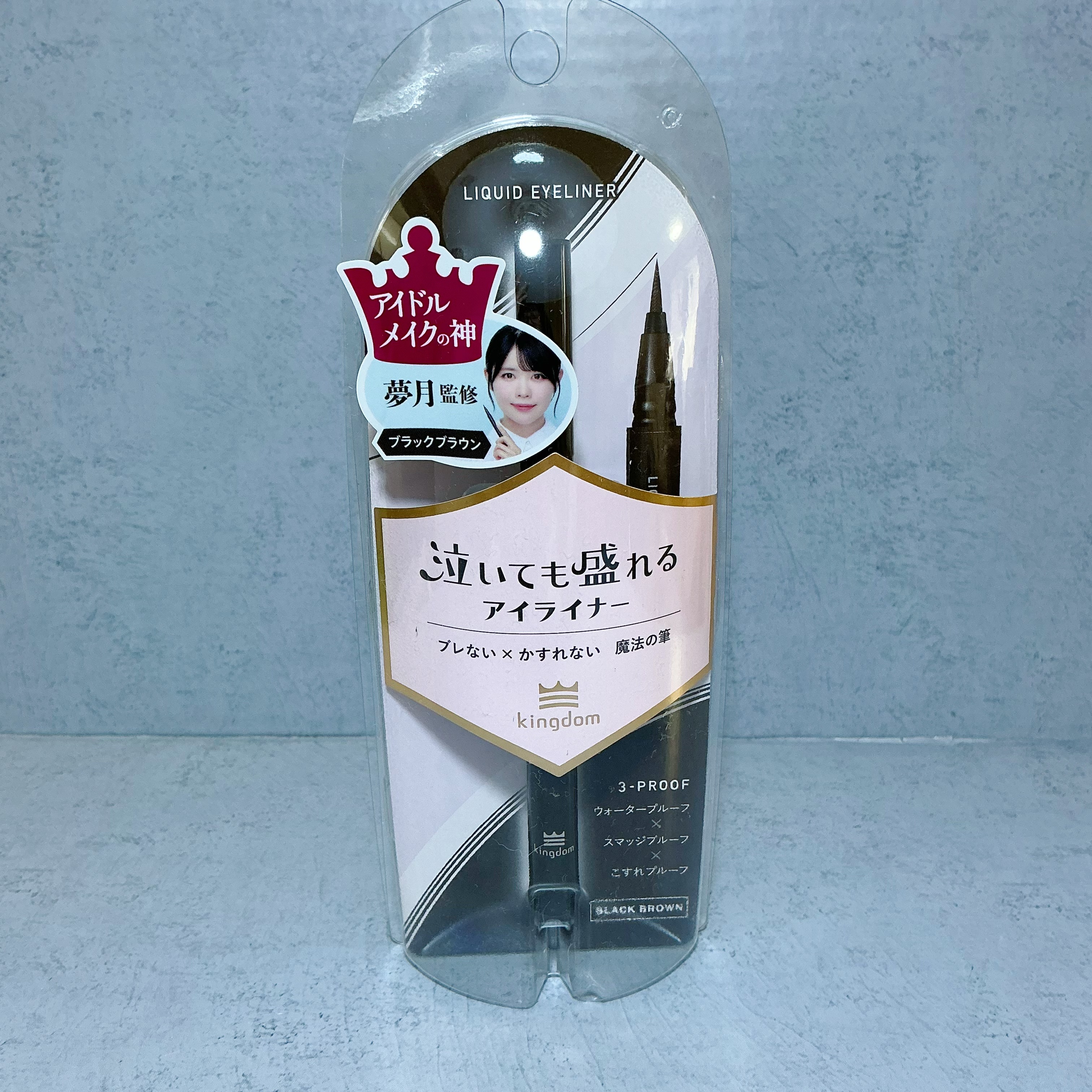 - キングダム リキッドアイライナーTPは、初心者でも、簡単に理想のアイラインが引きやすい「魔法の筆」を採用。ブレにくく描ける安定感とかすれにくく描けることが特長で、日常使いからステージメイクまで幅広く対応します。 さらに、落ちにくさも強化*。「こすれプルーフ」を含む3つのプルーフ処方へと進化*しました。 Point 1:誰でもプロ級!ブレにくい × かすれにくい「魔法の筆」 「ブレにくく描ける」丸形センイと、「かすれにくく描ける」星形センイをブレンドし、0.1mmの極細ラインもなめらかに描けます。 ●【丸形センイ:ブレにくい】太さの異なるセンイを絶妙なバランスで配合。手ブレしにくい、コシのある筆を実現! ●【星形センイ:かすれにくい】凹み部分に液をたっぷり含むことができるため、かすれにくい! Point 2:涙・皮脂・こすれに強い!3つのプルーフ処方 ①涙・水・汗に強い:ウォータープルーフ ②皮脂に強い:スマッジプルーフ ③こすれに強い:こすれプルーフ <ブラウン> 自然な目力 王道ブラウン。 <ブラック> 強すぎない絶妙ブラック。 <ブラックブラウン> 黒の目力×茶の柔らかさを兼ねそろえた黒みブラウン。 <ラテブラウン> 柔らか盛れ まろみラテブラウン。 *自社従来品との比較