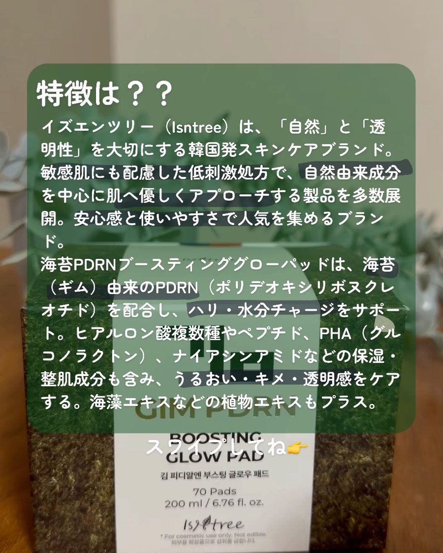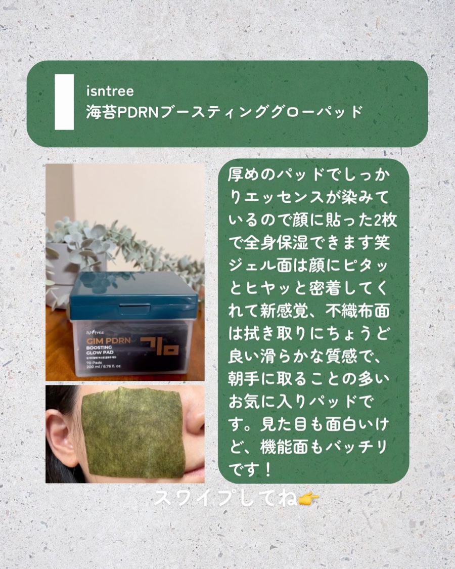 【まるで本物の海苔👀⁉️】isntreeの海苔PDRNパッド💚🌱まるで韓国海苔のようなビジュアルが衝撃的のトナーパッド!海苔(ギム)PDRN(ポリデオキシリボヌクレオチド、保湿成分)配合🌊2in1パッドでメイクノリが良い水光肌を完成してくれる...