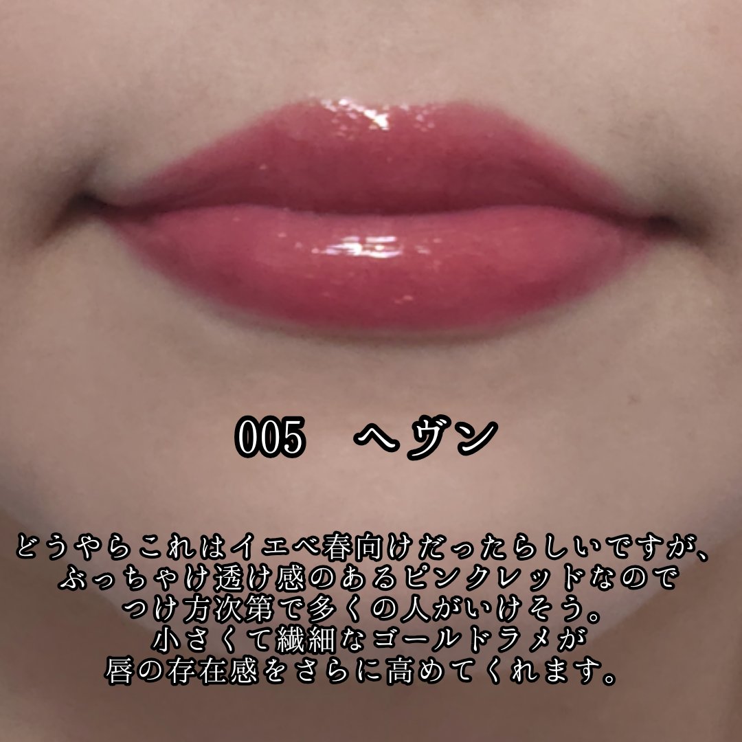 - うるんだツヤで、ぷっくり*唇 クリアな発色で、うるおい色づく口元に 1.輝きあふれるようなツヤ 輝きがあふれるような、濃密なツヤ感がつづく 2. 立体的な、ぷっくり感* うるおいツヤやかで立体的な、ぷっくり感*のある唇を演出。 3.シアーでクリアな発色 透け感があり、重ねることで、より鮮やかな発色に 4.うるおい感で、唇をなめらかに とろけるように密着して、ぷっくり*とした滑らかな唇に。 *乳酸メチル(整肌成分)の冷感、保湿成分(ツバキ種子油、ヒマワリ種子油、アーモンド油、マカデミア種子油、ヒマシ油)によるメイクアップ効果