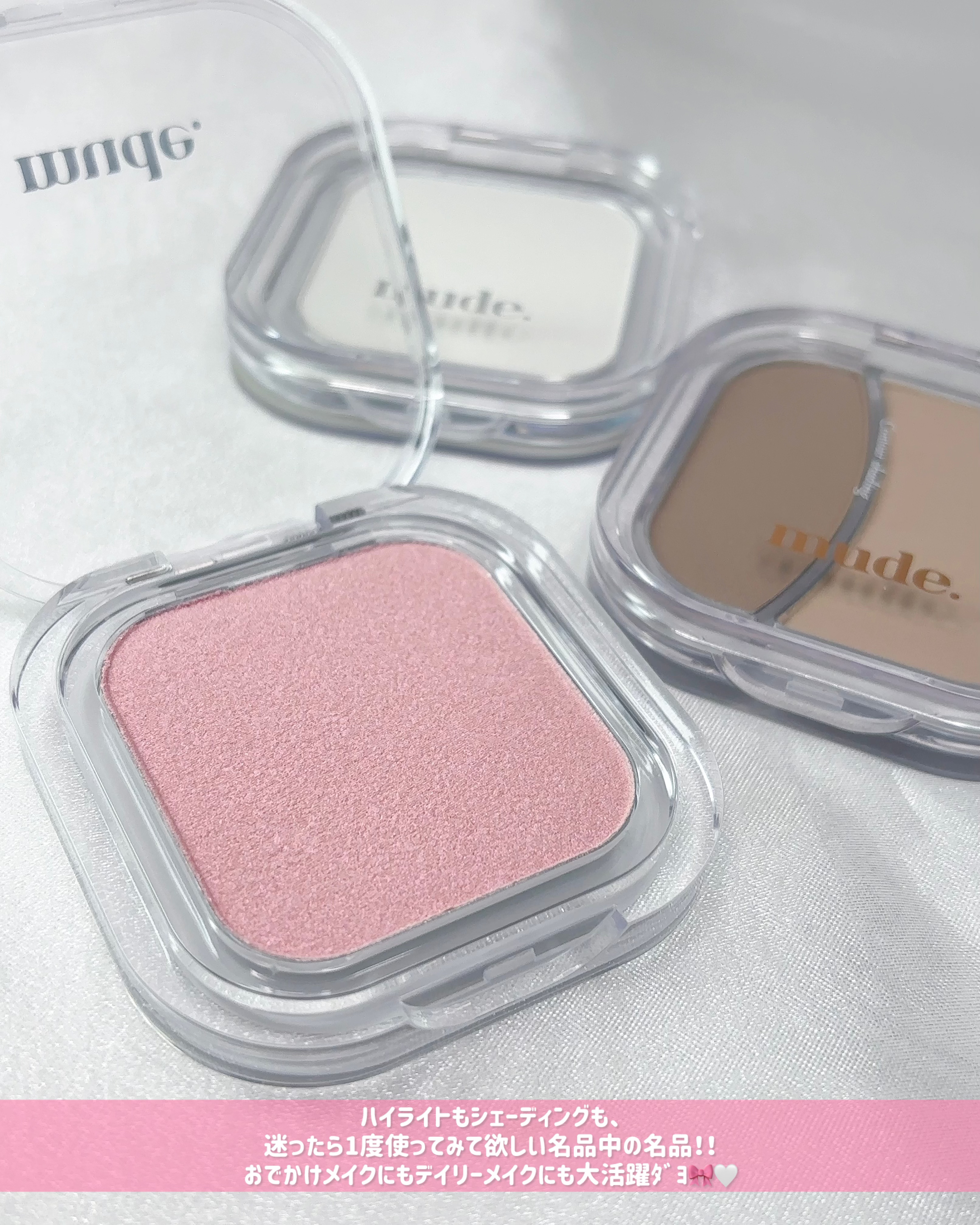 仕込みはmude.|自然に盛れる骨格コントゥアメイク▫️mude.・フェイススカルプターシェーディング01ナチュラル・フェイスボリューマーハイライターM01ボリューム1どちらもさらふわ質感でムラになりにくく扱いやすいです◎今回新作のフェイスス...