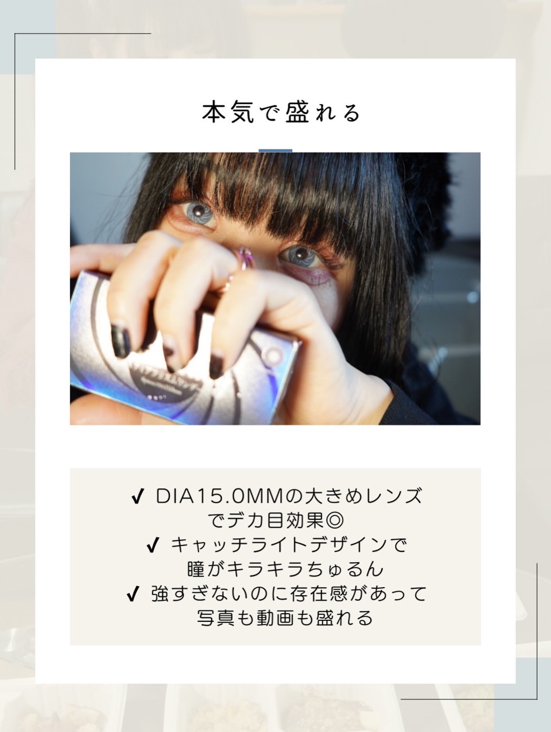| めちゃくちゃ発色してくれる直径が小さめなカラコンを 探している方にはとてもおすすめです\( ´ω` )/ | 詳細を見る |