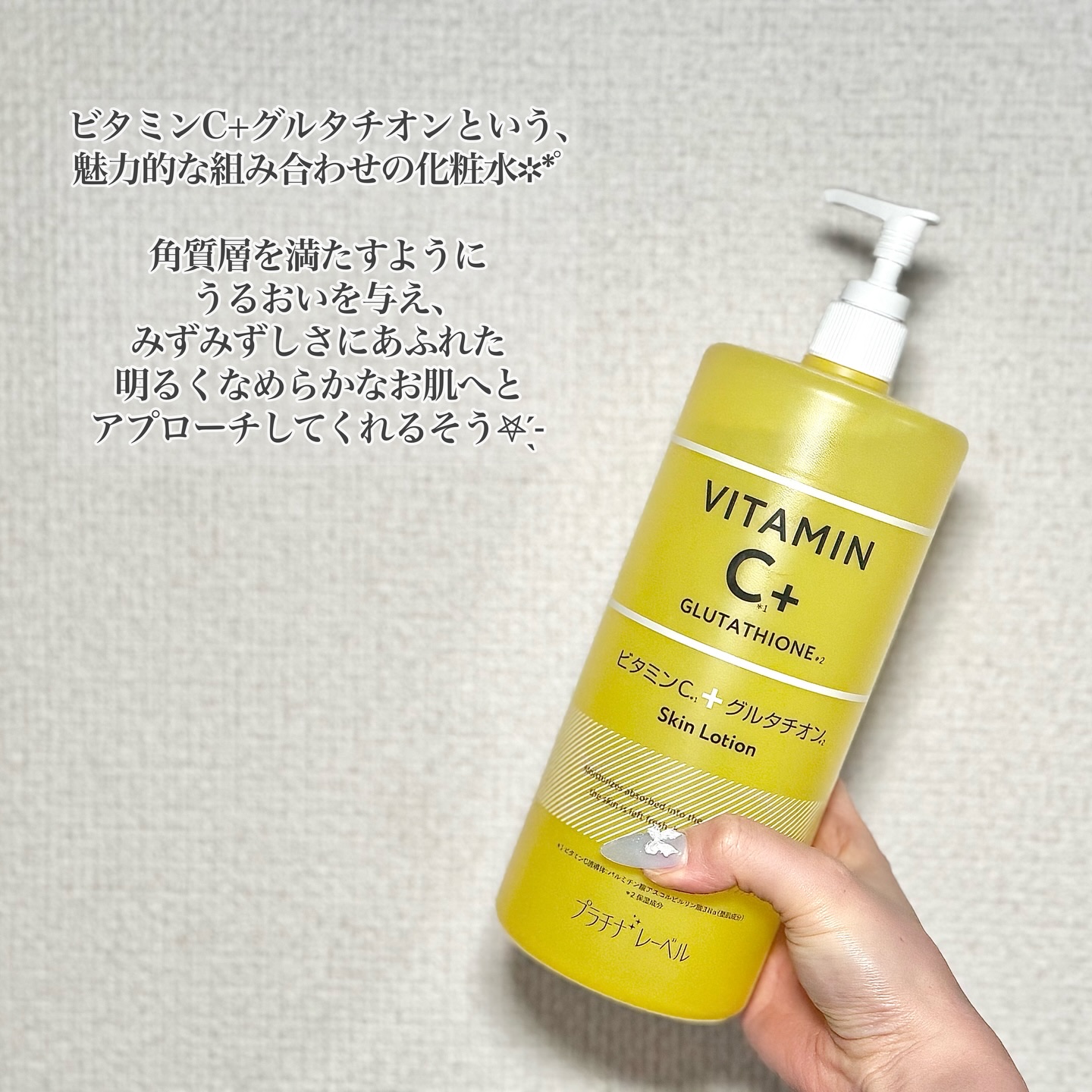 .❇️❇️❇️❇️❇️❇️❇️❇️プラチナレーベルVCグルタチオンローション❇️❇️❇️❇️❇️❇️❇️❇️ビタミンC誘導体*1でくすみ・シミをケア。抗酸化成分で肌の透明感を促進し、明るい肌へ導いてくれるのだそう✨少しとろみのある...