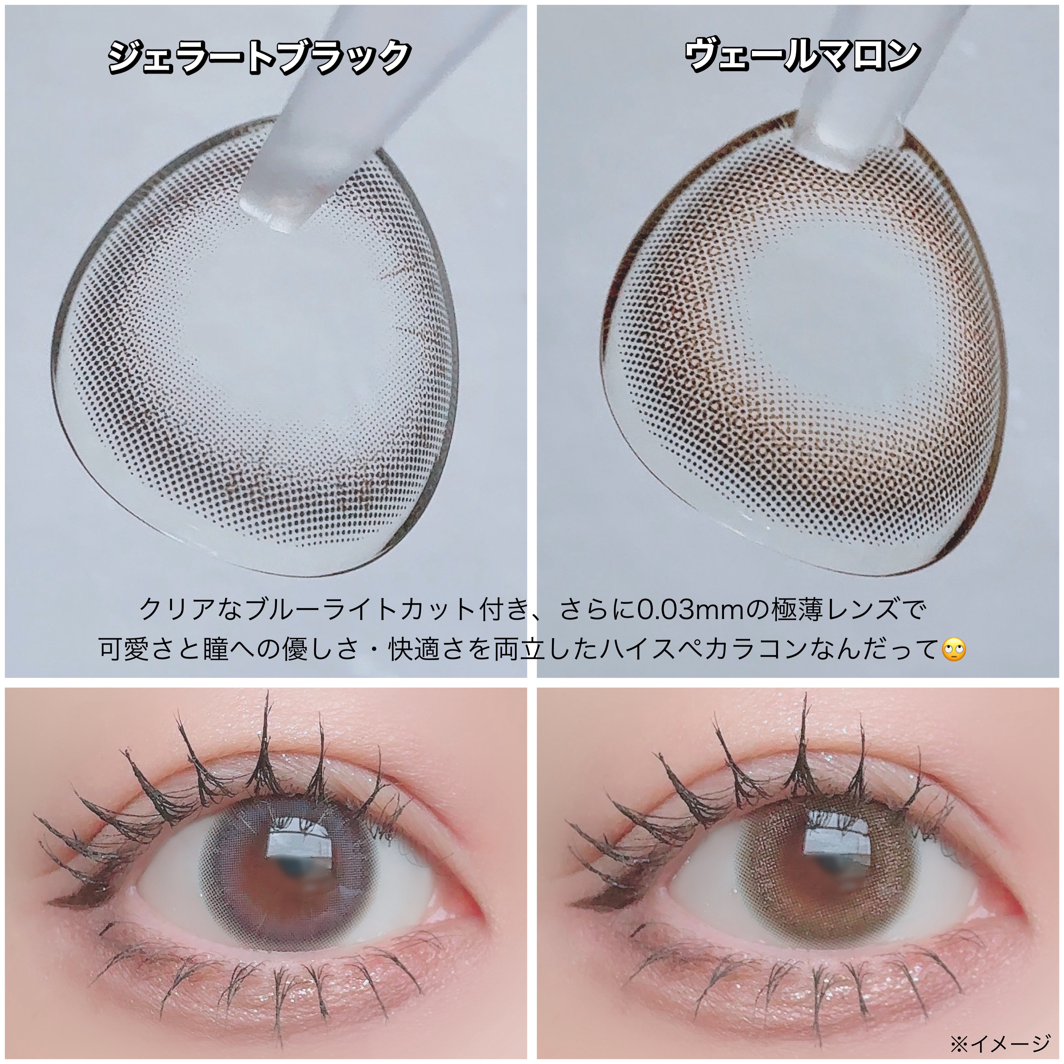 - カラコンってバレにくいのに可愛いだけバレる♡“うるみ裸眼風レンズ”という新提案! かわいいだけじゃなく0.03mm極薄レンズでつけ心地も◎! 無色透明ブルーライトカット付 カラーラインナップ さまざまなメイクや瞳のタイプに合わせられる2カラー。 自目が茶目さんでも黒目さんでもナチュラルに盛れてうるっと見える自然な発色にこだわりました。 <ヴェールマロン> “甘さひそませ、ほの艶ブラウン” ・こっそり仕込んだピンクベージュのハイライトドット ・ほどよく盛れる絶妙サイズ ・黒目でも茶目でもふわっとトーンアップする <ジェラートブラック> “うるっと纏う、清涼ブラック” ・透けるブルーグレーでツヤと立体感を演出 ・光が差し込む斜線ハイライト ・裸眼っぽさにこだわったぼかしフチ 8月31日(土)17:00よりLILY ANNA Qoo10店にて先行発売 メガ割終了後、各WEB販売店にて順次販売予定 カラーコンタクトレンズの不適正使用による眼障害の危険性等などがあります。 ●コンタクトレンズは高度管理医療機器です。不十分な洗浄・消毒など不適切なケアや、長時間・交換期間を超えた装用により、アレルギー性結膜炎、角膜感染症、角膜潰瘍等の重篤な眼障害が発生する危険性があります ●ご使用前に取扱説明書を確認してください 使用上の留意事項 ●眼科医院等を受診してからお求めください ●眼に異常を感じたら直ちにレンズ使用を中止し、お近くの眼科等で診察を受けてください ●医師の指示にしたがってご使用ください ●コンタクトレンズを装用する場合、自覚症状がなくても、眼科医院等での定期検査を受けてください ●レンズに不具合がある場合は使用しないでください