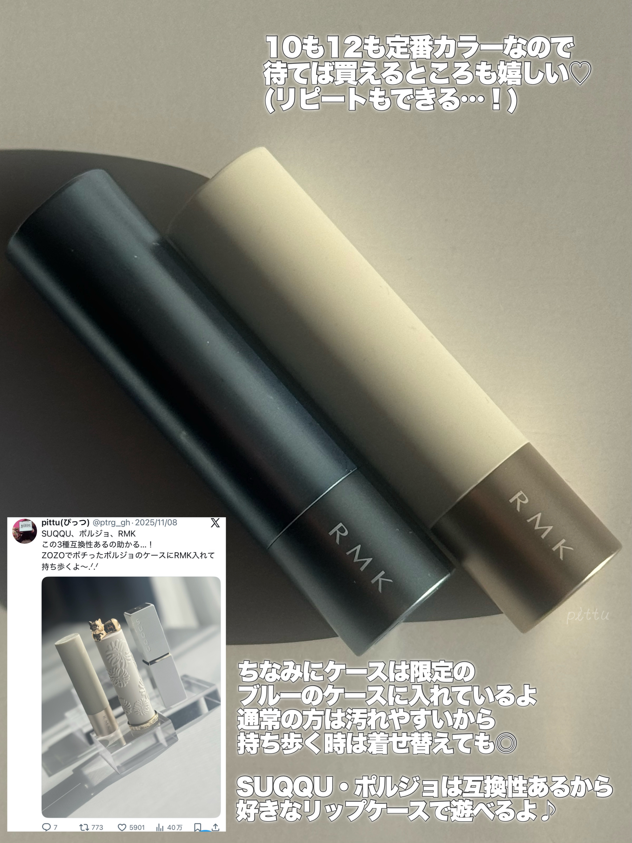 ムチッとした質感と色持ちがお気に入りのRMKデューイーメルトリップカラーの新色をお迎え🤍12スイートサブライムは上品なローズピンク。ほんのり青みを感じるニュートラル寄りのまろみカラーでこういう色待ってた!このシリーズはほんとにお気に入りで4...