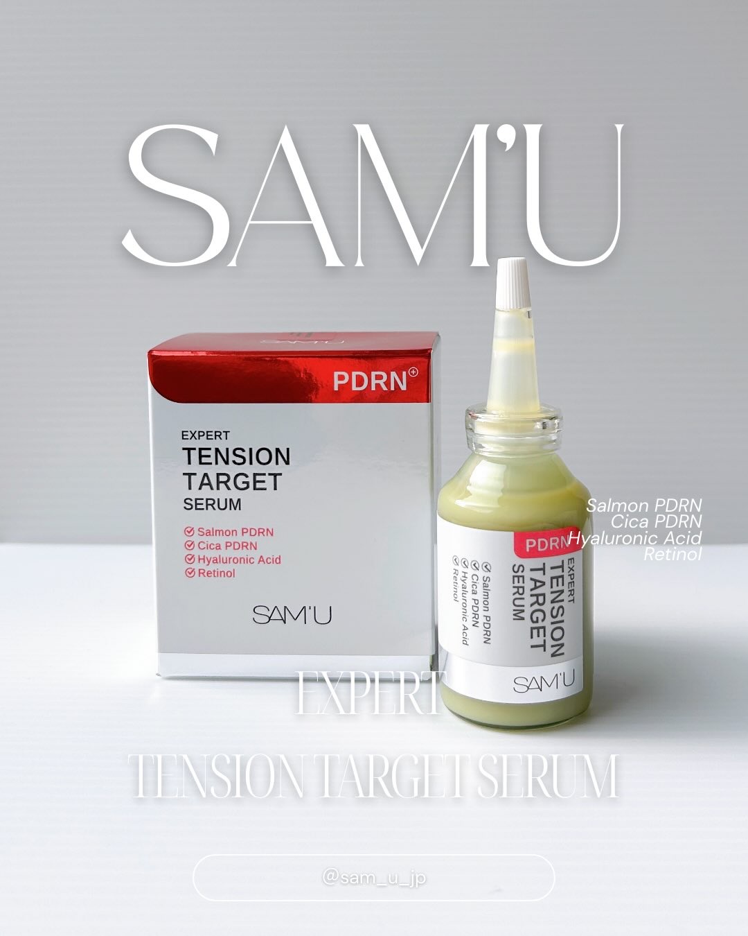 #PRSAM'U@sam_u_jp@samu_jp_reviewPDRNエキスパートテンションターゲットセラムPDRN・ペプチド・ヒアルロン酸配合肌にうるおいとハリを与える美容液✨セラムの緑色は、着色料を使用せず成分そのものの色を生かした「抹...