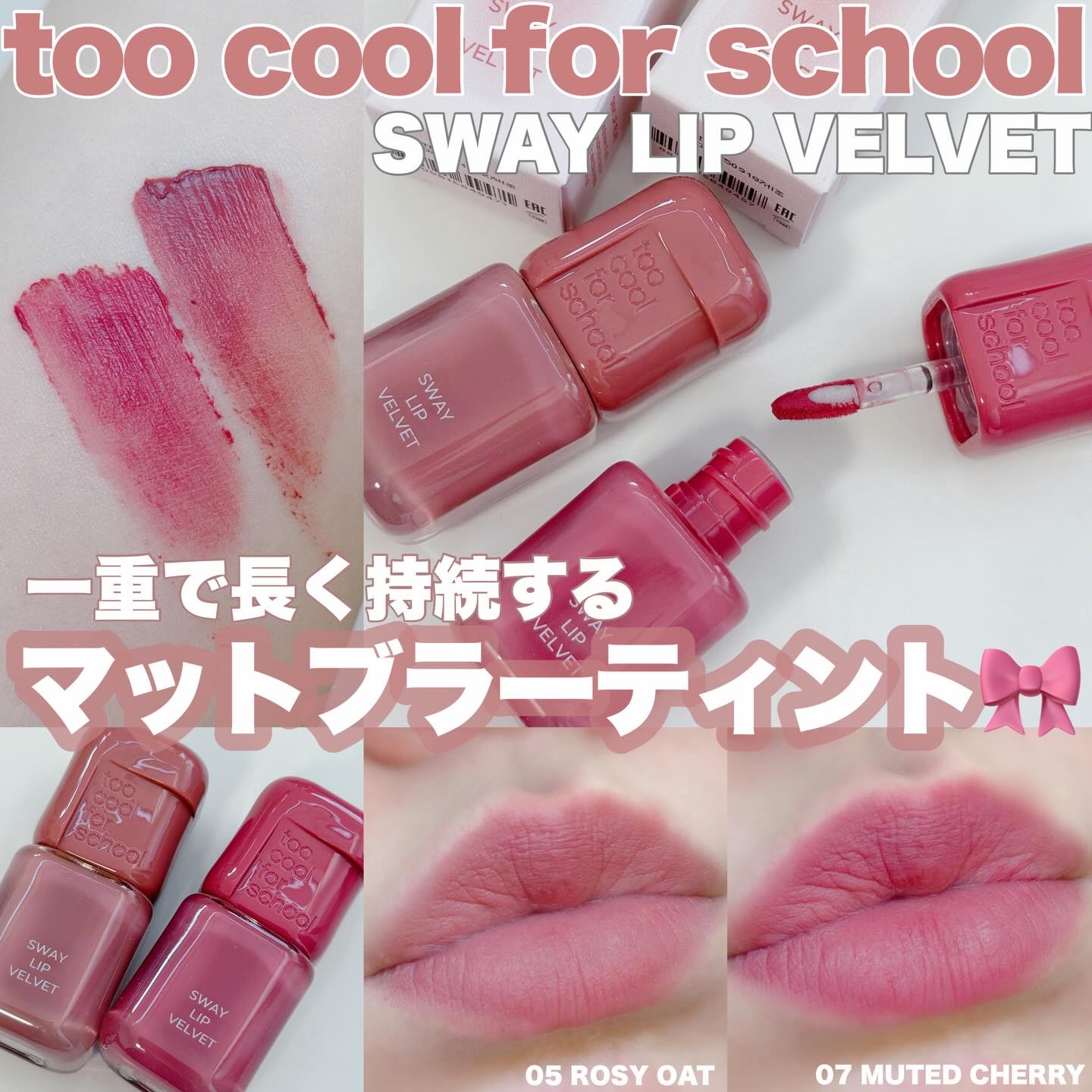 ⋱⋰⋱⋰⋱⋰⋱⋰⋱⋰⋱⋰⋱⋰⋱⋰⋱⋰⋱⋰⋱⋰⋱⋰#PRtoocoolforschool*スウェイリップベルベット#05ロージーオート#07ミューテッドチェリープライミングゲル配合で、唇の縦じわをふんわりカバーしてくれるような塗り心地💫ひと塗...