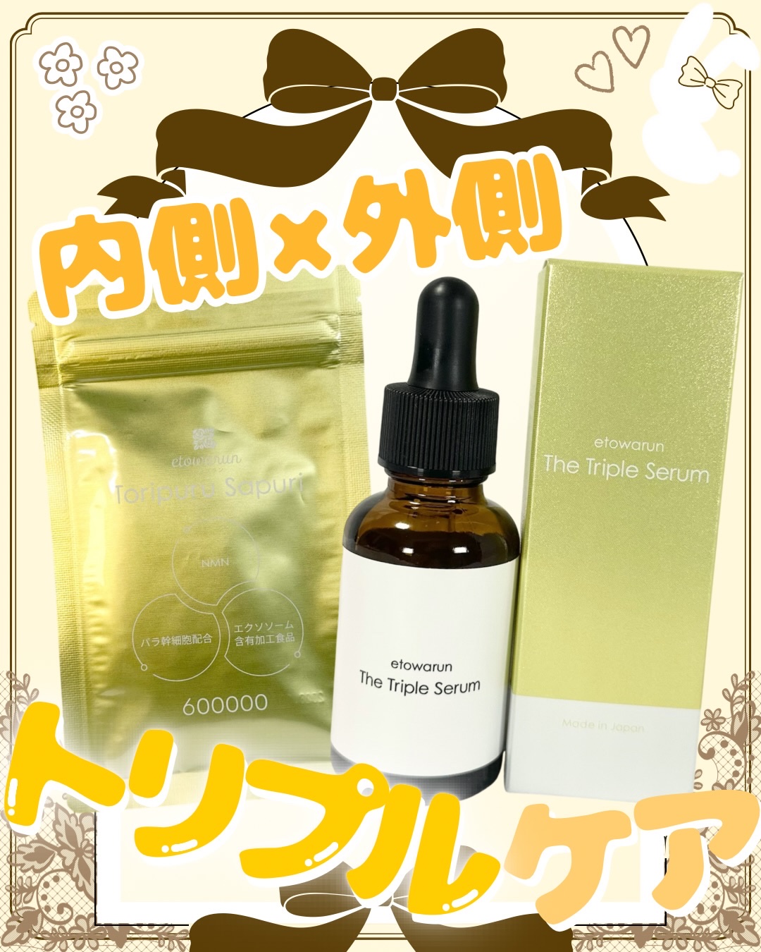 \\美容サロン監修💓内側と外側、合わせてケア💓//◎etowarun・エトワラントリプルセラム・エトワラントリプルサプリ各1,980\エトワラントリプルセラム/☑︎乾燥による肌悩みに多角的にアプローチする成分処方〜4種の美容成分を"トリプルア...