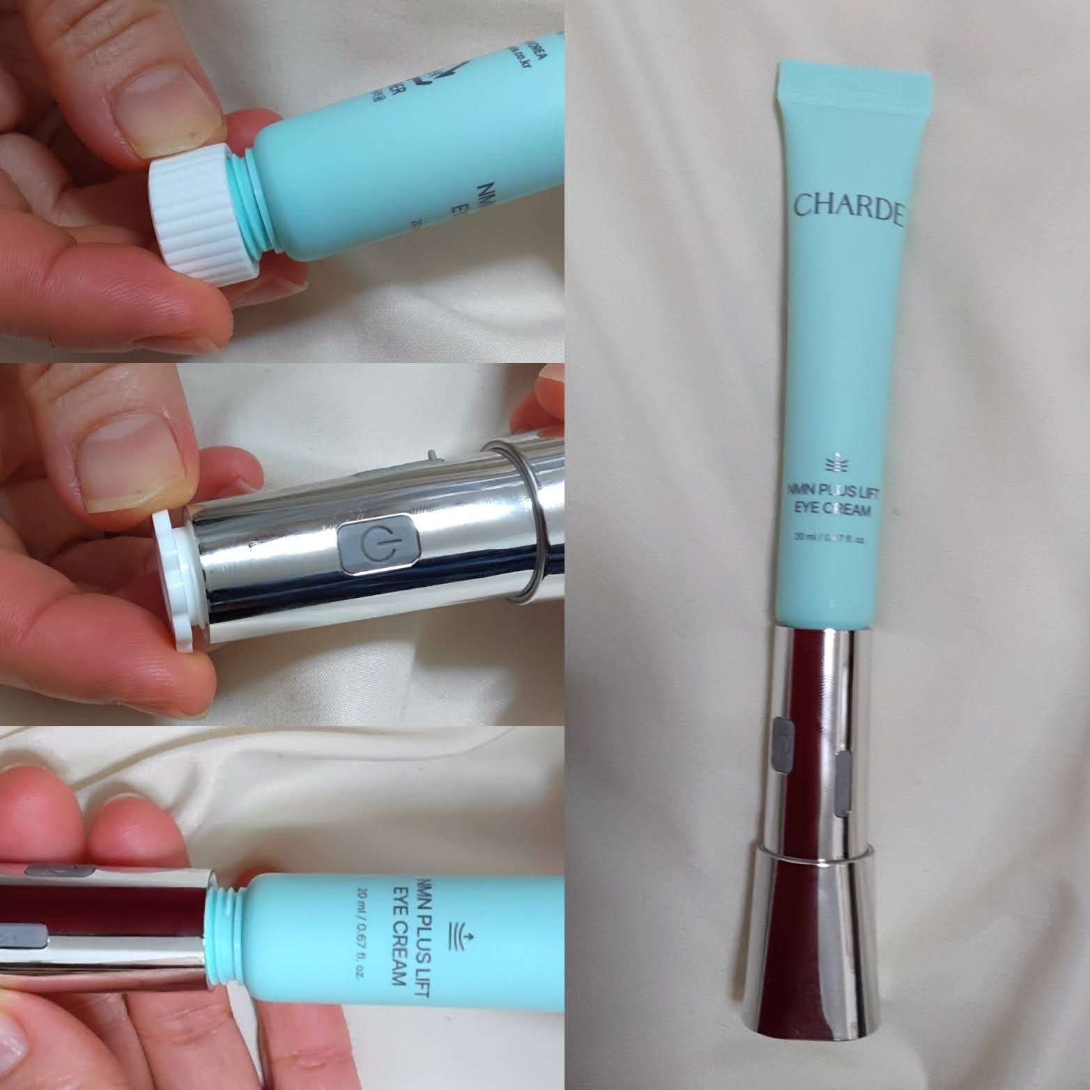 韓国コスメブランドシャルドの新商品NMNプラスリフト振動アイクリームアイクリームに目元用美顔器デバイスのついた頼りになるアイケアキット✨️デバイスの3つのモードはブースター(振動)→セラピー(発熱)→デュアルチューニング(振動+発熱)と多角的...