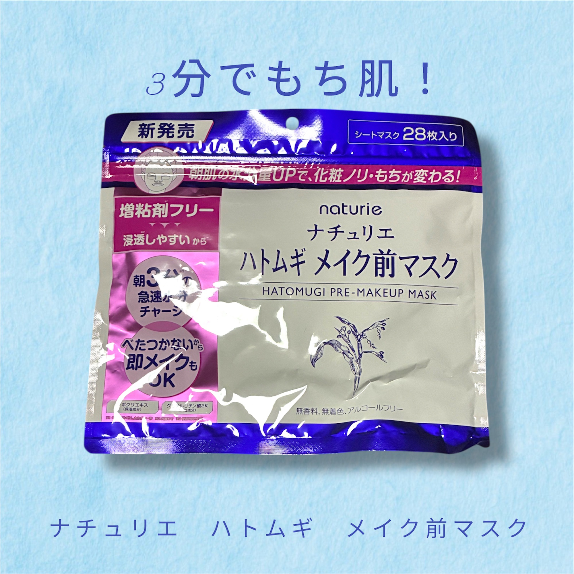ナチュリエさまからいただきました\3分でメイクもちが変わる⁉︎/メイク前のたった3分で急速水分チャージ!水分量UPで化粧ノリ・もちもUPナチュリエハトムギメイク前マスク¥9902025年10月16日新発売《商品特徴》✔︎忙しい朝でもたった3分...