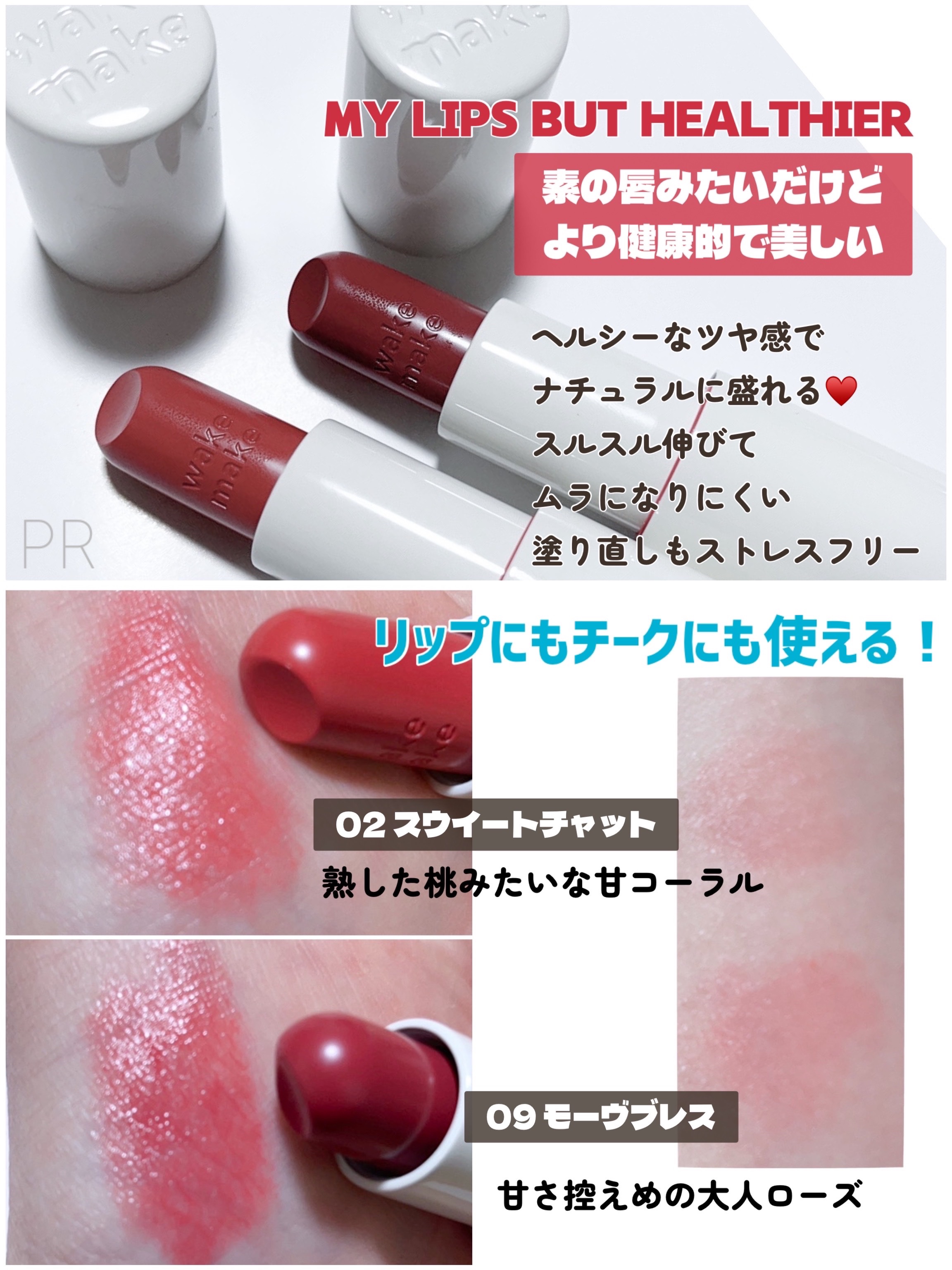 - 塗るたびに、ときめきが走り出す。メイクの楽しさを加速する「#止まらぬリップ」。 肌なじみのいい発色と自然なツヤで今っぽい唇に仕上がる、10色展開。 うるおいをチャージして、ほんのり血色感*¹をじゅわりと与えます。 どんな時でも使いやすい軽やかな塗り心地で、なりたい私を叶える仕上がりに! 【POINT】 ■ヘルシーに魅せる#MLBHリップ 「MLBH =MY LIPS BUT HEALTHIER」。自然なツヤとカラーで、いつもの唇がもっと健康的な印象に見える仕上がりに! ■〝今っぽさ〞を叶える自然なツヤめき ツヤと血色感*¹がほどよく両立。ラズベリーシードオイル*²配合で、うるおいを守りながらツヤめく唇に。 ■軽く均一にフィット。チークにも◎ ひと塗りでムラを防いでフィットし、自然な血色感*¹をプラス。チークにも使えます。 *1 メイクアップ効果による *2 (ラズベリー種子油/コハク酸トコフェロール)アミノプロパンジオールエステルズ(整肌成分)