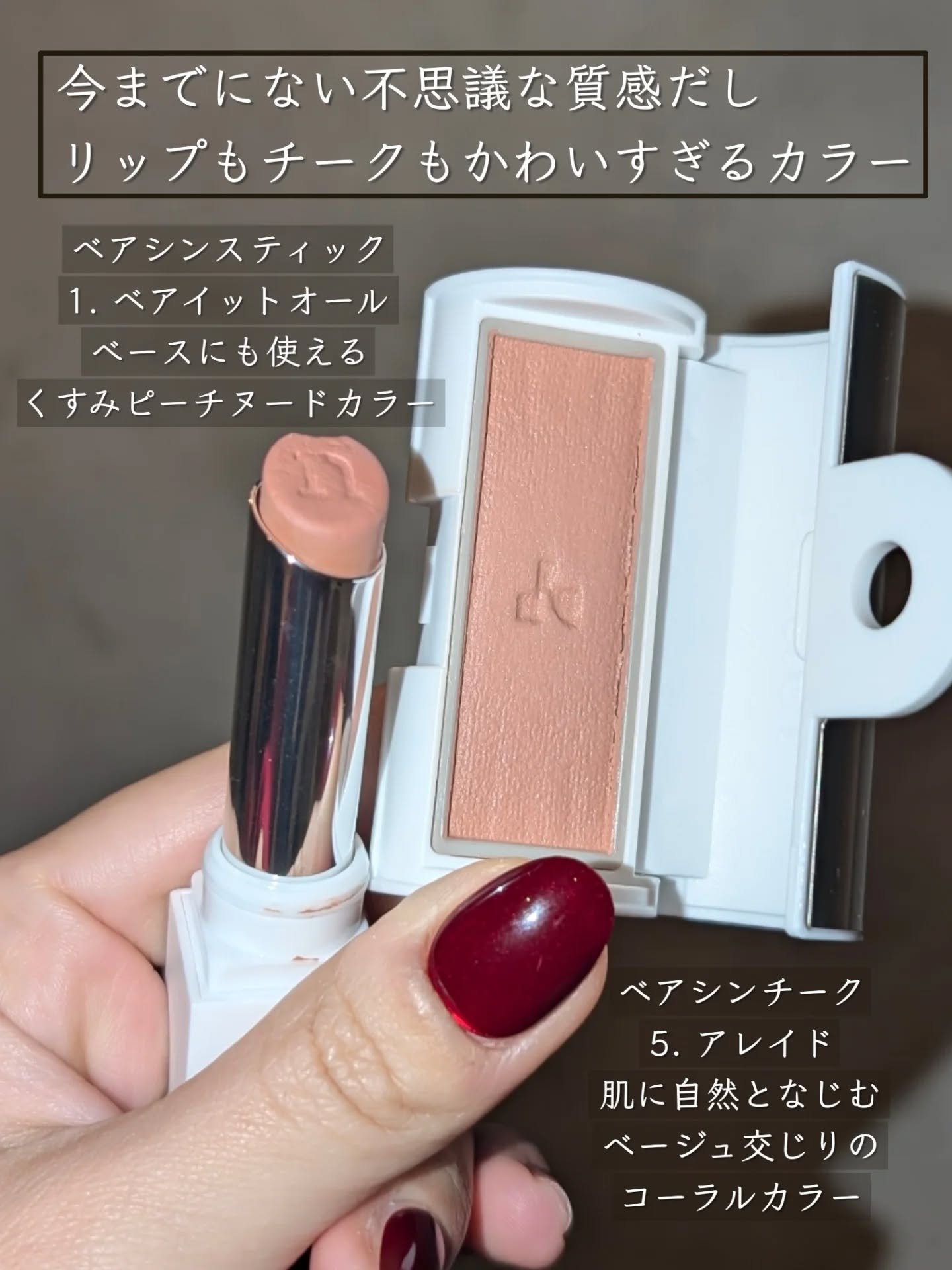 文房具📎✒️みたいな可愛いパケ❣️つけてることを忘れる軽〜いつけ心地のリップ&チーク!※ブランド提供品今回絶対にチェックしてほしいのが塗っていることを忘れるくらいの”解放感”がすごい「ベアシンスティック」💄水分20%配合で内側はしっとりな...