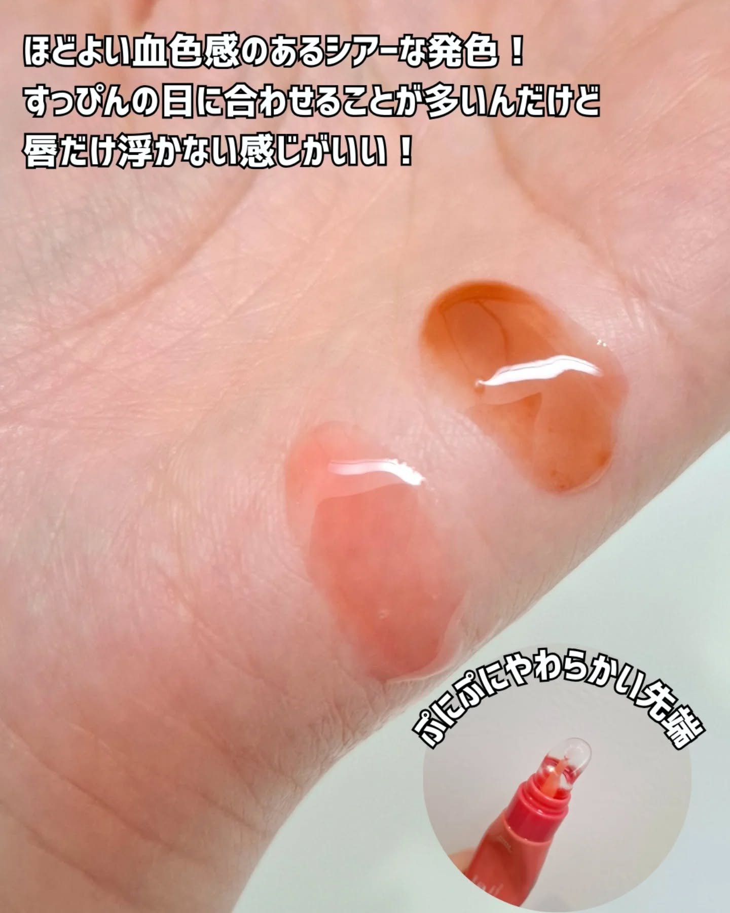 fweeの3Dボリューミンググロス。バニラ70%を買うのは決めていて、スウォッチしたらソルベもかわいくて30%を購入。 同じカラーでも濃度によって色が全然違ったから、気になるなら店舗で買うのがおすすめ❤️ つやぷっくり感すごくない?😍