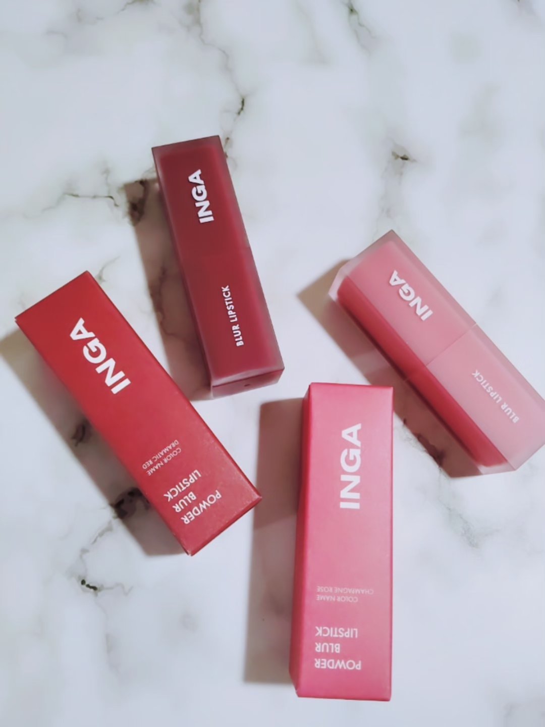 INGAパウダーブラーリップスティックCHAMPAGNEROSEDRAMATICRED重ね塗りしても重くならない!\エアリーマットなテクスチャ/1/9リニューアル発売♡一塗りで高級感のある鮮やかな発色🩷マットリップって、乾燥したり、パサつくイ...