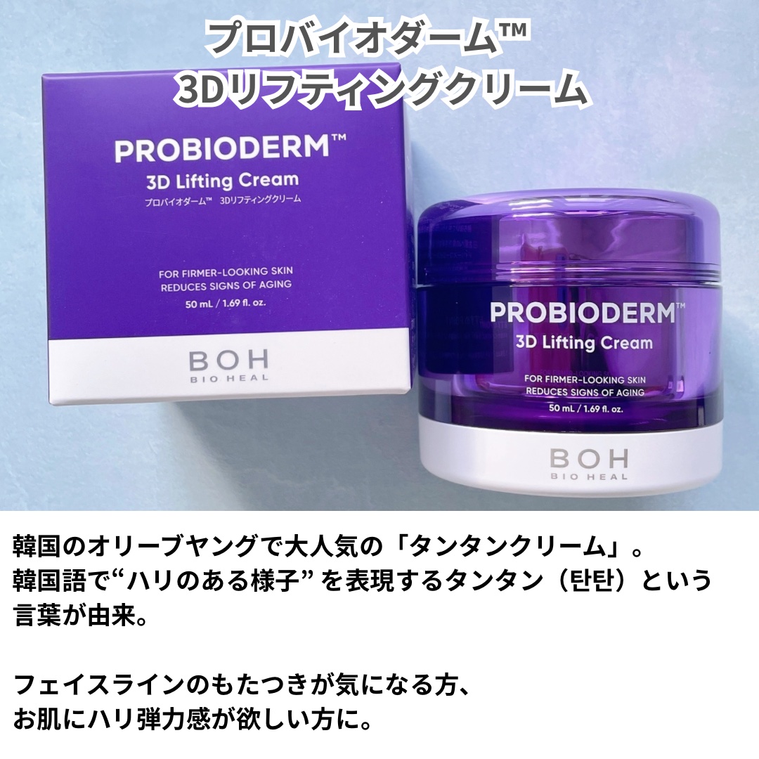 LemonSquare様を通じて、BIOHEALBOH様よりプロバイオダーム™ 3Dリフティングクリーム・プロバイオダーム™3DリフティングバイオトクシルPLGAセラムを提供していただきました。フェイスラインのもたつきが気になっていたところ出...