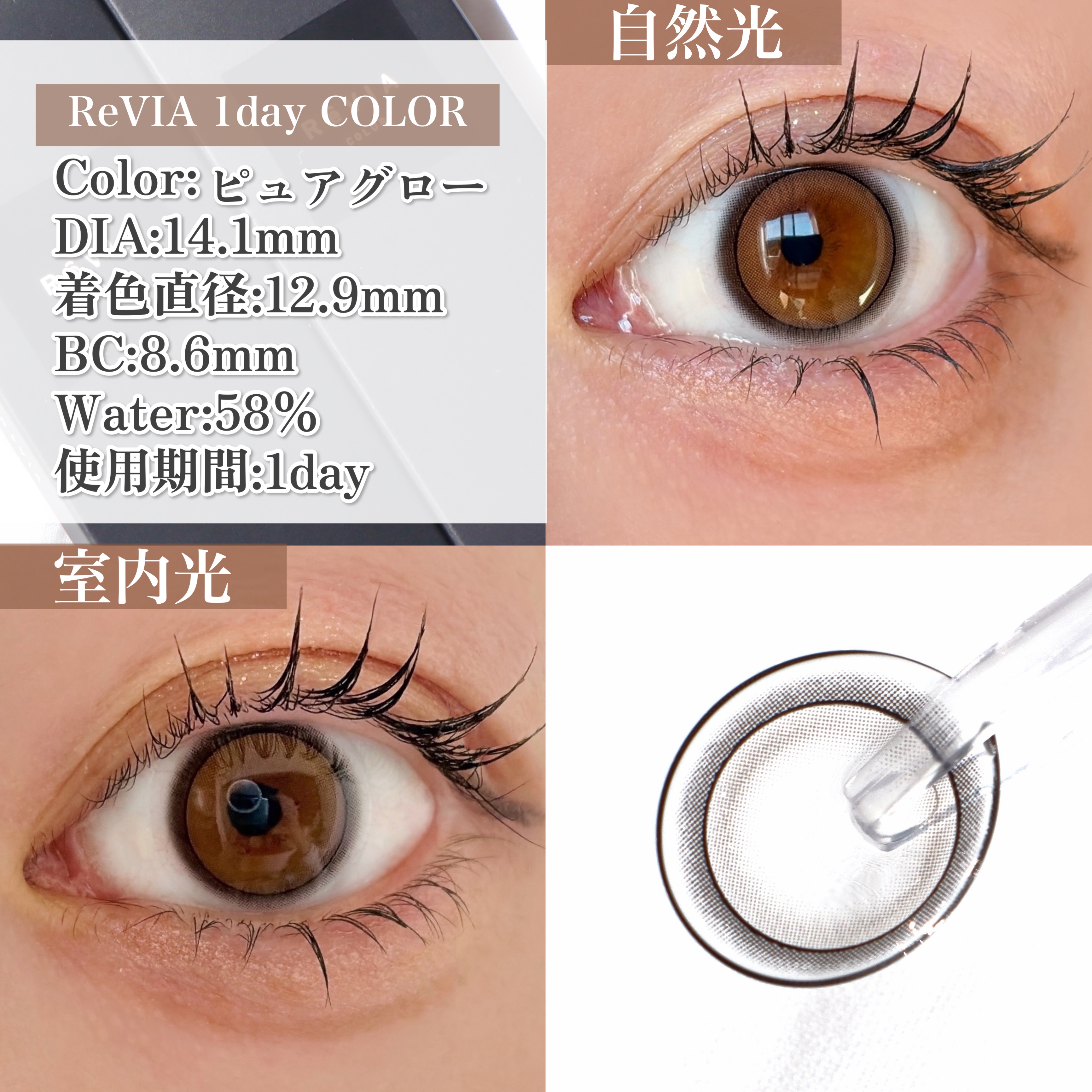 ReVIA1dayから「艶めく透明感」な3カラーが1/14(水)新登場♡———-♡——————–♡———ReVIA1day1箱10枚入り1,870円(税込)———-♡——————–♡———【PureGlow】着色直径:12.9mm元から瞳がき...