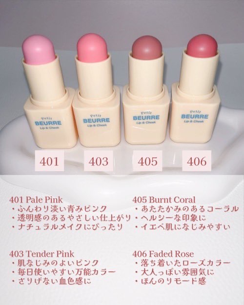- <製品説明> 1. バターのようになめらかに広がり、肌になじむようにふんわり色づいて、自然で柔らかな雰囲気を演出するリップ&チークスティックです。 2. リップスティック、リップベース、チーク、アイメイク、アンダートーンメイクなど、さまざまなメイクに使いやすいマルチユースタイプです。 3. 乾燥感やべたつきを感じにくいテクスチャーで、なめらかに伸び、重ねるほどやさしい発色を楽しめる質感です。 4. コンパクトで持ち歩きしやすいサイズ感で、ポーチにもすっきり収まるリップ&チークスティックです。 5. 保湿成分を配合し、敏感な肌の方でも使いやすい、やわらかな使用感が特徴です。自然なツヤ感を与え、明るい印象のメイクに仕上げます。 6. ふんわりとしたピュアなライトカラーから、落ち着いたニュートラル・ミュートカラーまで、全6色のバリエーションをご用意しています。