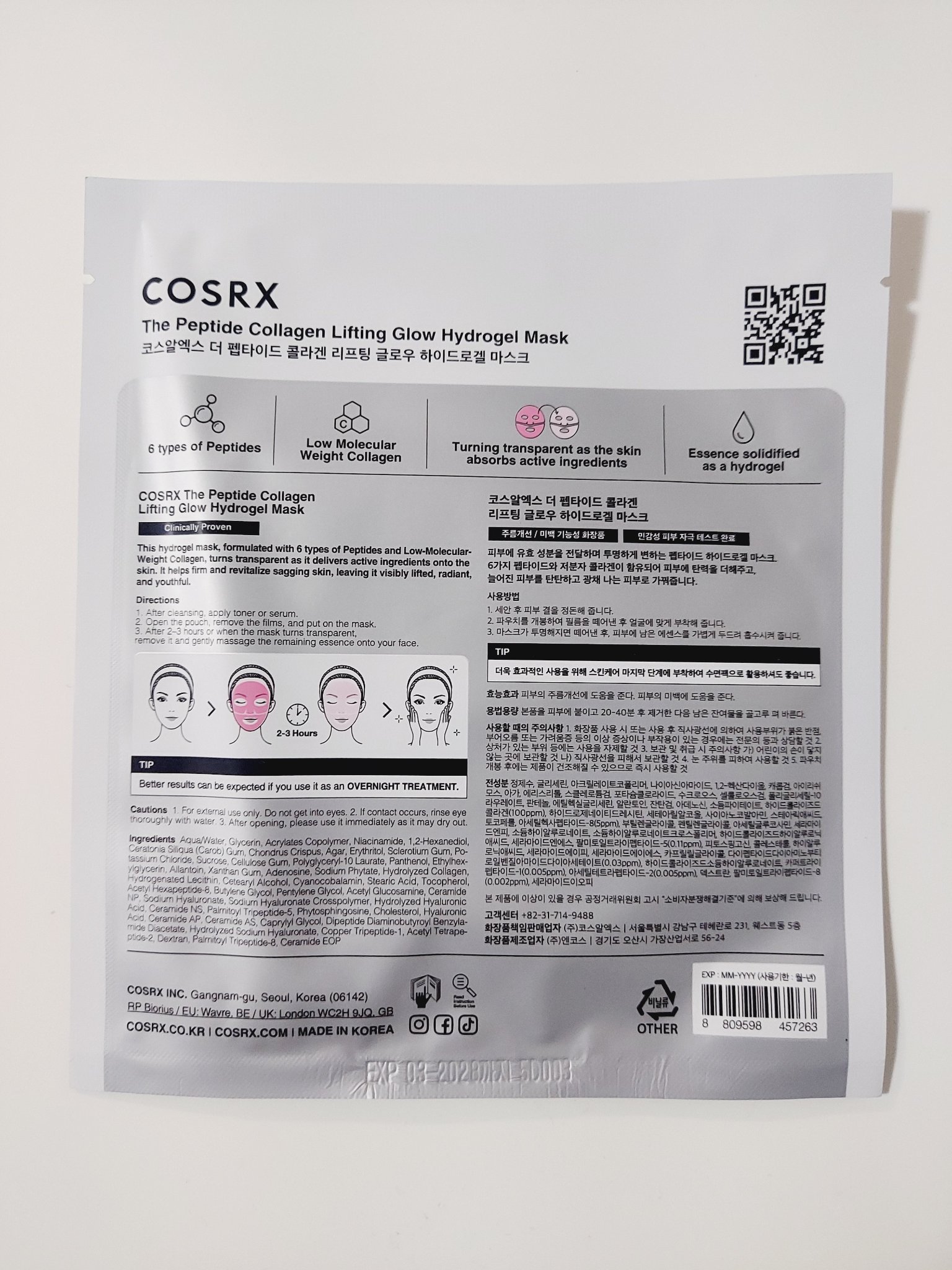 LIPSを通して楽天市場コスメ部さまより「COSRXペプチドコラーゲンハイドロゲルマスク」いただきました\♡︎/⋆⋆商品説明▷▶▷6種類のペプチドと低分子コラーゲン配合で、肌をふっくら整えるマスク。マスクを貼って2〜3時間で成分がじんわり肌に...