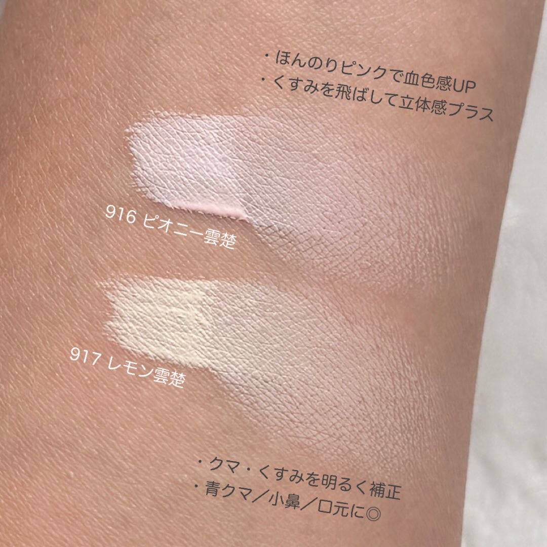 - <914 ライラック雲楚> 精製水、チタンジオキシド、イソドデケイン、トライメチルシロキシシリケート、ポリプロピルシルセスキオキセイン、ポリグリセリル-3ポリジメチルシロキシエチルジメチコン、ヒドロゲネチドポリ(C6-14オレフィン)、フェニルトライメチコン、グリセリン、ウルトラマリン、メチルメタクリレートクロスポリマー、カプリリルメチコン、ダイステアーダイモニウムヘクトライト、1,2-ヘキサンジオール、ポリグリセリル-3ポリリシノリエイト、マグネシウムスルフェイト、ダイメティコン/ビニールダイメティコンクロスポリマー、ソルビタンセスキオリエイト、ダイメティコンクロスポリマー、アルミニウムヒドロキシド、トライエトキシカプリリルシレイン、赤色酸化鉄、アラントイン、エチルヘキシルグリセリン、パンテノール、香料、ベンジルベンゾエイト、リナルール、シトロネルオール、アミールシンナムアル、ヘキシルシンナムアル、ユゼノール、シンナミルアルコール、ブチレングライコール、オクラ果実エキス、麻根エキス、カプリルヒドロキサミックアシッド、トコフェロール、メキシカンチア種子エキス、亜麻種子エキス、ナトリウムソイヒドロライズドコラーゲン、ブドウ皮エキス、レモンエキス、ラベンダー花エキス <915 ピーチ雲楚> 精製水、チタンジオキシド、イソドデケイン、トライメチルシロキシシリケート、フェニルトライメティコン、ポリグリセリル-3ポリジメチルシロキシエチルジメチコン、ヒドロゲネチドポリデセン、グリセリン、ポリプロピルシルセスキオキセイン、ポリグリセリル-3ポリリシノリエイト、黄色酸化鉄、ダイステアダイモニウムヘクトライト、1,2-ヘキサンジオール、ジメチコンクロスポリマー、メチルメタクリル酸塩、マグネシウムスルフェート、赤色酸化鉄、ダイメティコン/ビニールダイメティコンクロスポリマー、アルミハイドロキサイド、ソルビタンセスキオリエイト、トライエトキシカプリリルシレイン、アラントイン、エチルヘキシルグリセリン、パンテノール、黒色酸化鉄、香料、ベンジルベンゾエイト、リナルール、シトロネルオール、アミールシンナムアル、ヘキシルシンナムアル、ユゼノール、シンナミルアルコール、ブチレングライコール、オクラの実エキス、麻根エキス、カプリルヒドロキサミックアシッド、メキシカンチア種子エキス、トコフェロール、亜麻種子エキス、ソジウムソイヒドロライズドコラーゲン、ぶどう皮エキス、レモンエキス、ラベンダー花エキス