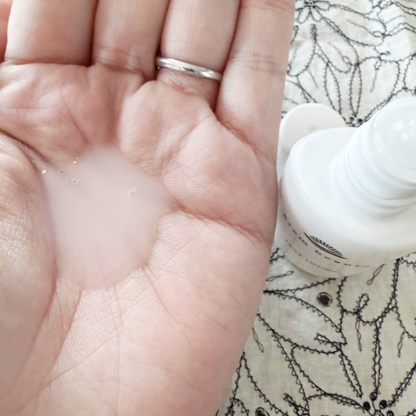 さらさらとした化粧水です。優しく甘い香りで気に入っています。適量を手に取り頬の内側から外側へその後鼻や目の周り顎額まで丁寧に馴染ませていきます。最後に首筋やデコルテまで馴染ませて肌のしっとりさを確認したらケアは完了です。SK-IIの販売員の方...