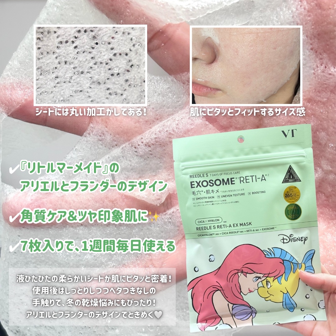- 成分の安定性を高めたレチノール誘導体※1とVT CICAをたっぷり※2含んだ植物由来のシートマスクが肌に密着。 毛穴悩み※4が気になりスペシャルケアが必要な時におすすめです。 毛穴が目立たず※3キメの整った美肌へ導くシートマスクです。 ※1 レチノイン酸ヒドロキシピナコロン(整肌成分) ※2 当社従来品比 ※3 うるおいを与えることによる ※4 乾燥による