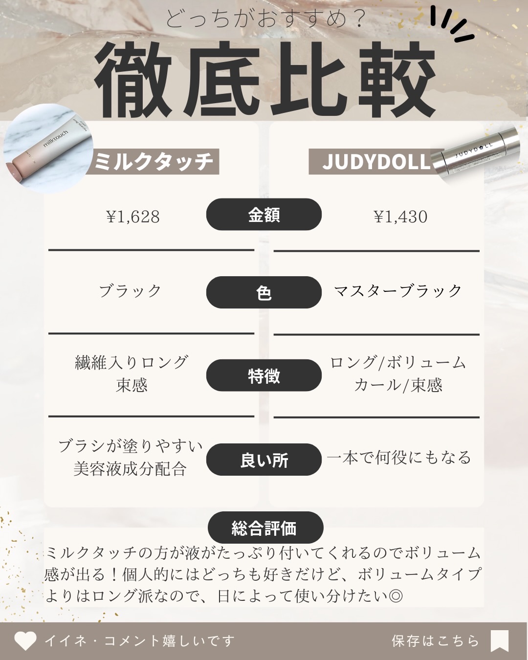 Milk Touch オールデイ ロング アンド カール マスカラ | 1,628円 |