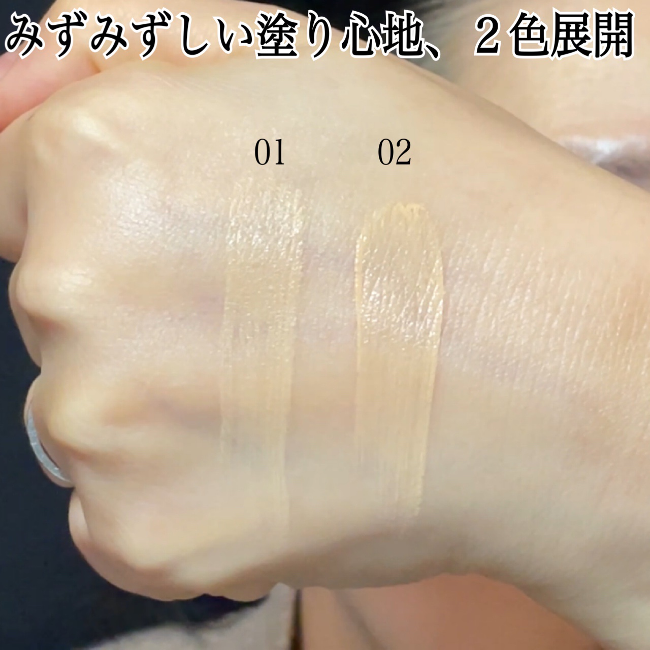 - 毛穴・色ムラをカバーし、みずみずしいツヤ肌に 美容液仕立ての水分感触で、肌悩みをつやんとカバーします。 水分タッチ設計の絹ごしメッシュ きめ細やかなメッシュ地で、ムラなくきれいにファンデーションを塗布できます。 べたつきを抑えながら、乾燥から肌を守る保水ケア 乾燥によるべたつきをカバーし、余分な皮脂や毛穴の広がりをケアします。 ・べたつき対策:ビタミンC誘導体*¹、グリシルグリシン(ひきしめ) ・潤い成分:水溶性セラミド*²、ナイアシンアミド、ワセリン、アミノ酸*³(全て保湿) これ1つで5in1効果 [乳液・美容液・クリーム・ファンデーション・コンシーラー] やさしい使い心地と7つのフリー設計 [石油系界面活性剤・パラベン・タール色素・アルコール・合成香料・酸化亜鉛・紫外線吸収剤] SPF50+・PA++++、UV耐水性★★ 汗・水に濡れても落ちにくく、夏の強い日差しから肌を守ります。 カラー展開 水分力スキンケアクッションファンデーション カラーチャート ・01 ライトベージュ:黄みよりのやや明るめ〜中間的な明るさ ・02 ナチュラルベージュ:ややピンクみのある中間的な明るさ 【使用方法】 化粧下地のあと、パフをメッシュに優しく押し当てファンデーションを適量とり、ポンポンと肌を軽くおさえるようにつけます。 *1 テトラヘキシルデカン酸アスコルビル(整肌) *2 グルコシルセラミド(保湿) *3 タウリン、リシンHCl、アラニン、ヒスチジンHCl、アルギニン、セリン、プロリン、グルタミン酸、トレオニン、バリン、ロイシン、グリシン、アラントイン、イソロイシン、フェニルアラニン(全て保湿)