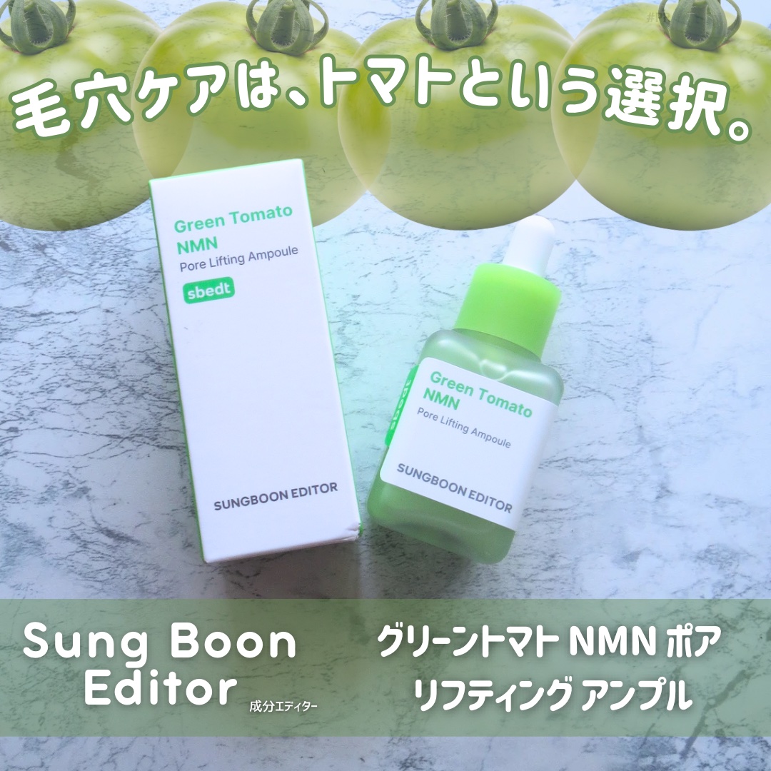 🍏SungBoonEditorグリーントマトNMNポアリフティングアンプル成分エディターの技術で厳選成分を凝縮✨4〜6nmの超微細ナノサイズで、毛穴までぐんぐん浸透※🔍4種の毛穴悩みを全方位ケア縦・横・メラニン・凹み毛穴にしっかりアプローチ🍅...