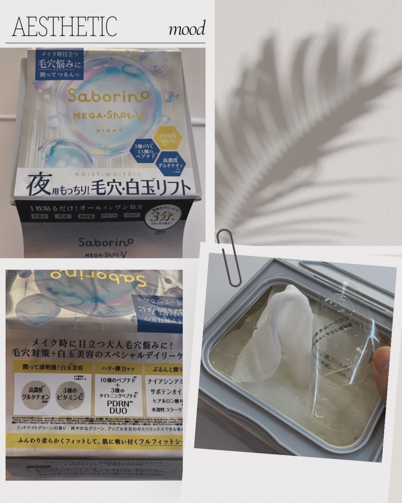 サボリーノメガショット夜用白玉マスクVをいただきました‼️😍 商品サボリーノ メガショット夜用白玉タイトニングマスクV オールインワン処方の夜用マスクを使用しました🎵 メイク時に目立つ毛穴悩みに毛穴対策+白玉*1美容のスペシャルな...