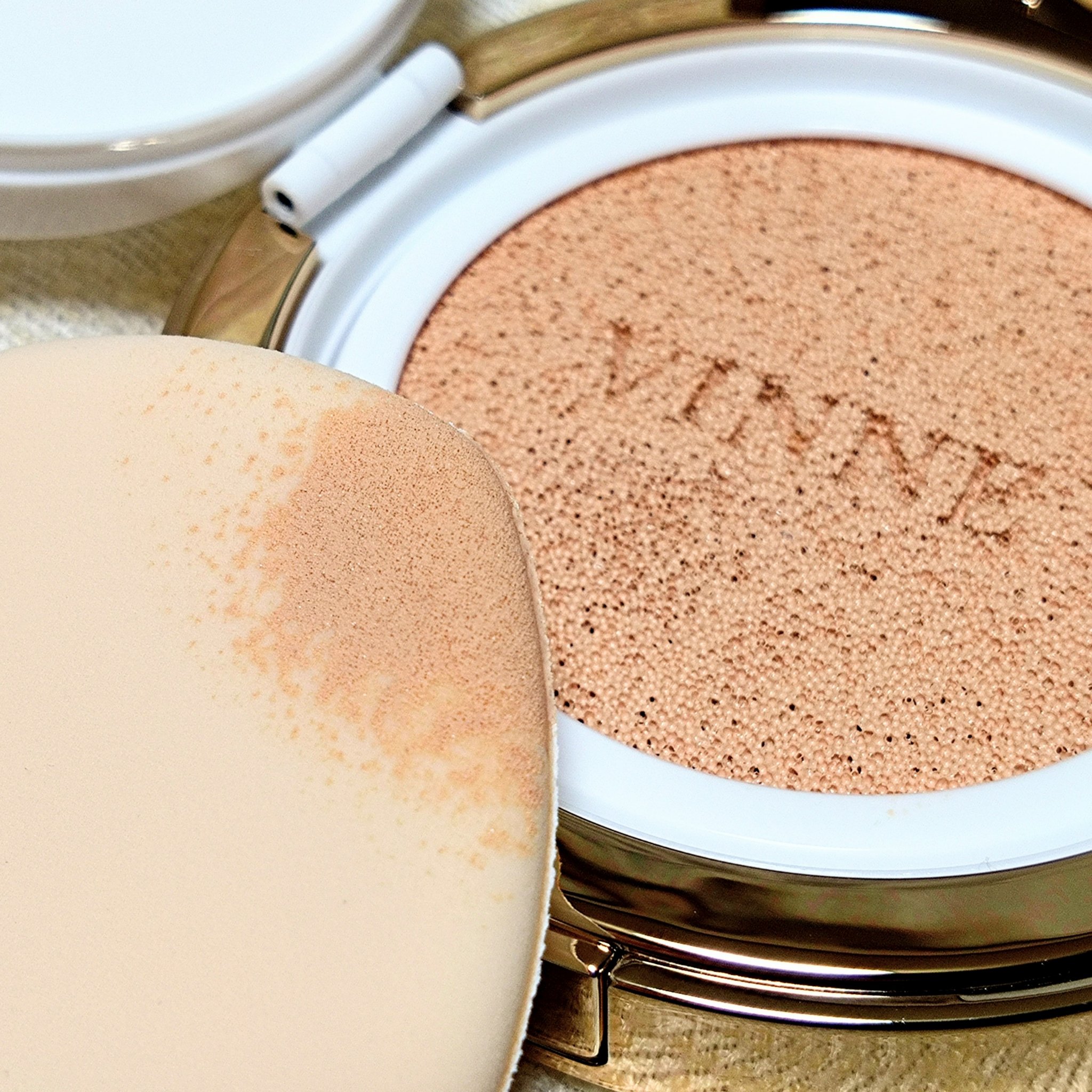 VINNE(ビンヌ)さまよりご提供いただきました!ダマスクローズウォーターを中心とした高濃度エッセンス配合!スキンケア後のようなみずみずしいツヤ肌が期待できそうなクッションファンデです。ダマスクローズや4種のスキンケア成分という、まさに「スキ...