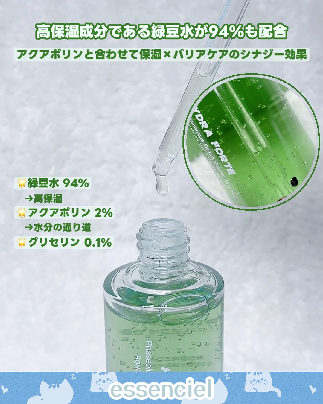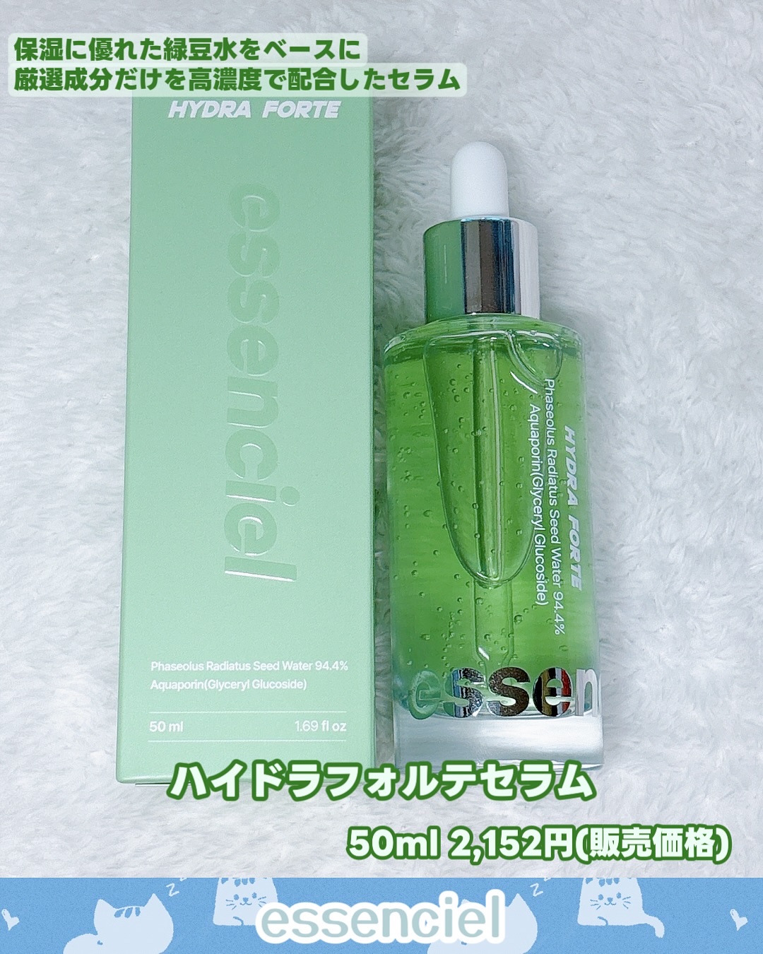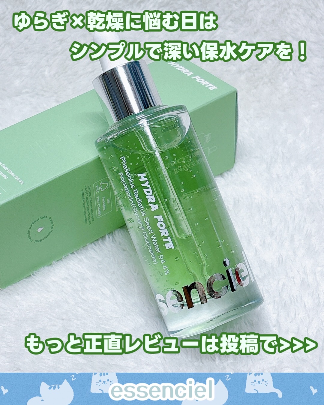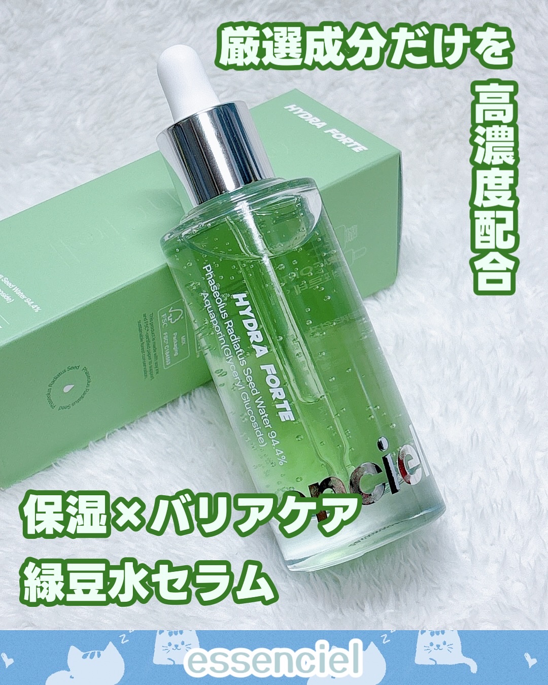 乱れた肌の水分バリア機能を整えて、うるおいをキープできる肌に導いてくれるセラム💚essenciel(エッセンシエル)/ハイドラフォルテセラム4週間の使用で肌の水分量が約32%改善する、厳選された成分だけで作られている商品🌱天然ミネラル緑豆水を...