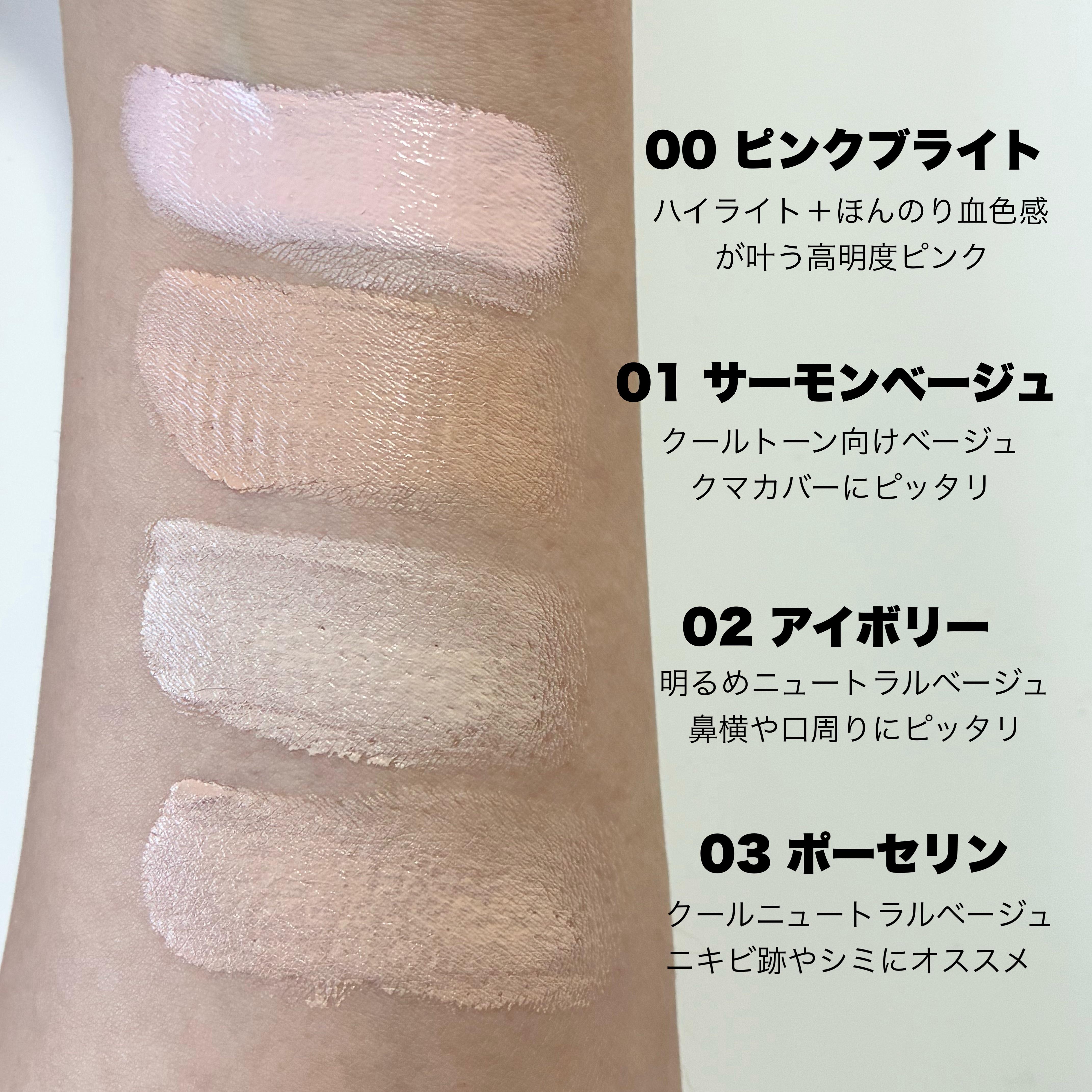- バターが溶け込むようにお肌になじみ、毛穴の凹凸を埋めてなめらかなお肌に仕上げるプライマー効果を持ったコンシーラー。 毛穴が気になりやすい頬の三角ゾーンをカバーし、つるりとなめらかなほっぺを演出します。 <00 ピンクブライト> 明るいピンクベースのベージュカラー。 <01 サーモンベージュ> ほのかに赤みを帯びていて落ち着いたトーンのベージュカラー。 <02 アイボリー> 透明感のある明るいアイボリーベースのニュートラルベージュカラー。 <03 ポーセリン> 血色感のあるピンクベースのクールニュートラルベージュカラー。 <Qoo10内「AK BEAUTY OFFICIAL」公式ショップにて2025年2月28日(金)先行発売>
