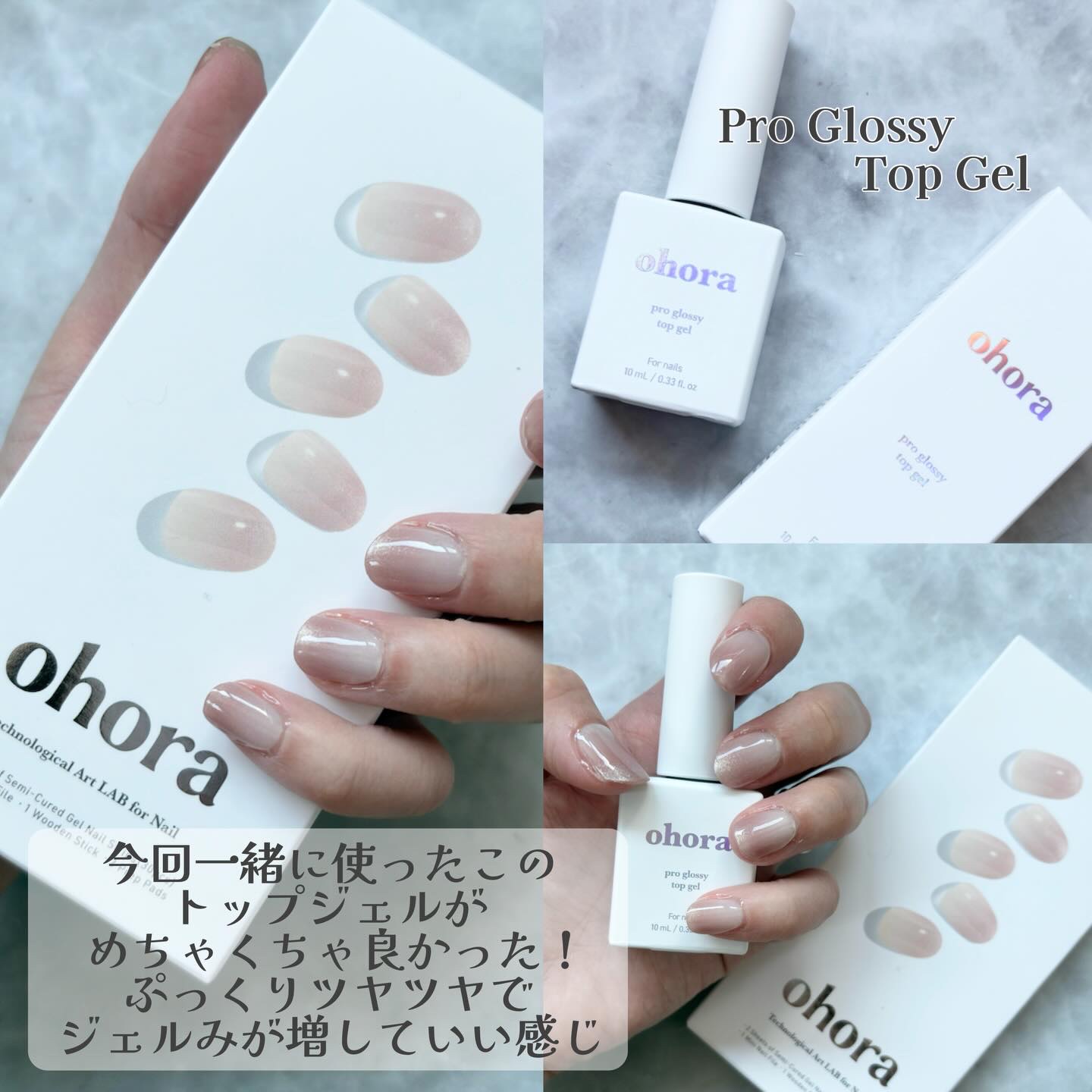 ohoraセミキュアジェル(シールタイプ)ネイルシールでよくおすすめされるのがohora♥️ネイルシール派の私はずっと気になっていました🌸ジェルを60%固めて作られているんだそう💎伸縮性のある柔らかい質感で、爪にピタッと密着してくれます🫶🏻剥...