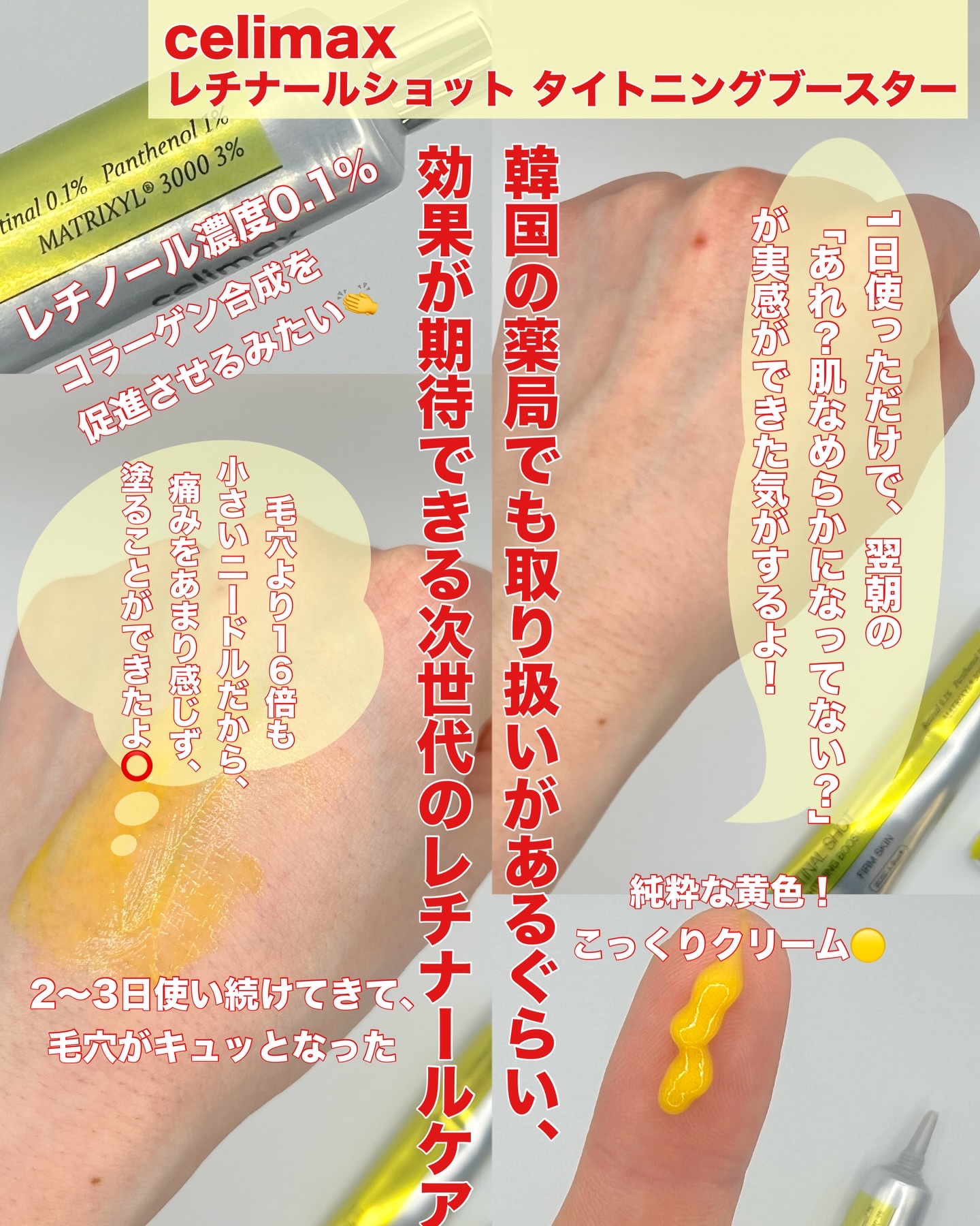 ■シワにさよなら?ハリ弾力ケアクリームがすごかった…■セリマックスレチナールショットタイトニングブースター@celimax.japan様にいただきました!忙しい日が続くと、肌の老け見えが特に気になる…(乾燥小じわとか、毛穴とか…)レチノールの...