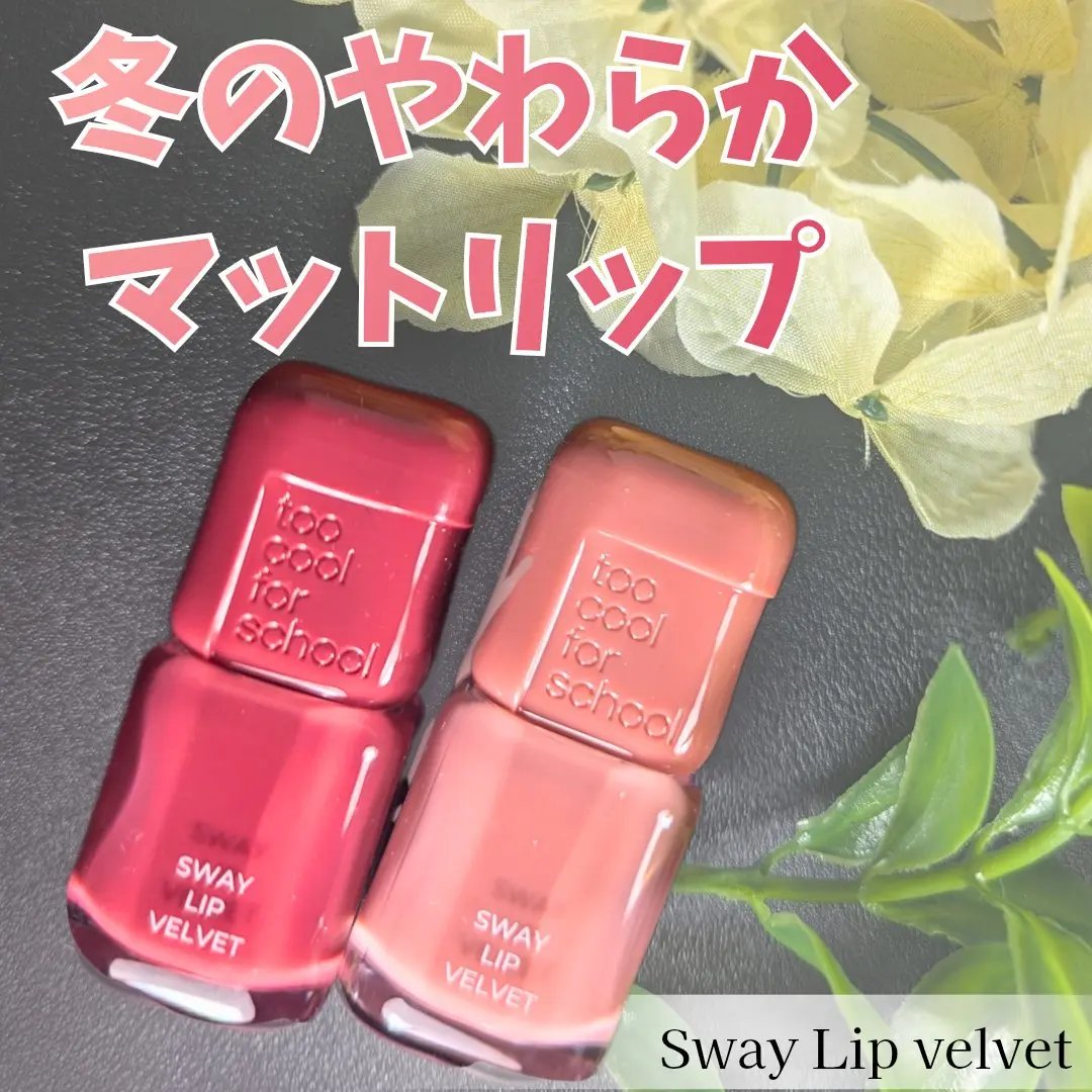 toocoolforschool(@tcfs_jp)#PRスウェイリップベルベットやわらかいマットテクスチャーで大人気!2色お試しさせて頂きました🤍薄く密着したあとパウダーベール膜が心地よい!乾燥も感じずに良い◎オーバーリップが大好きなので伸...