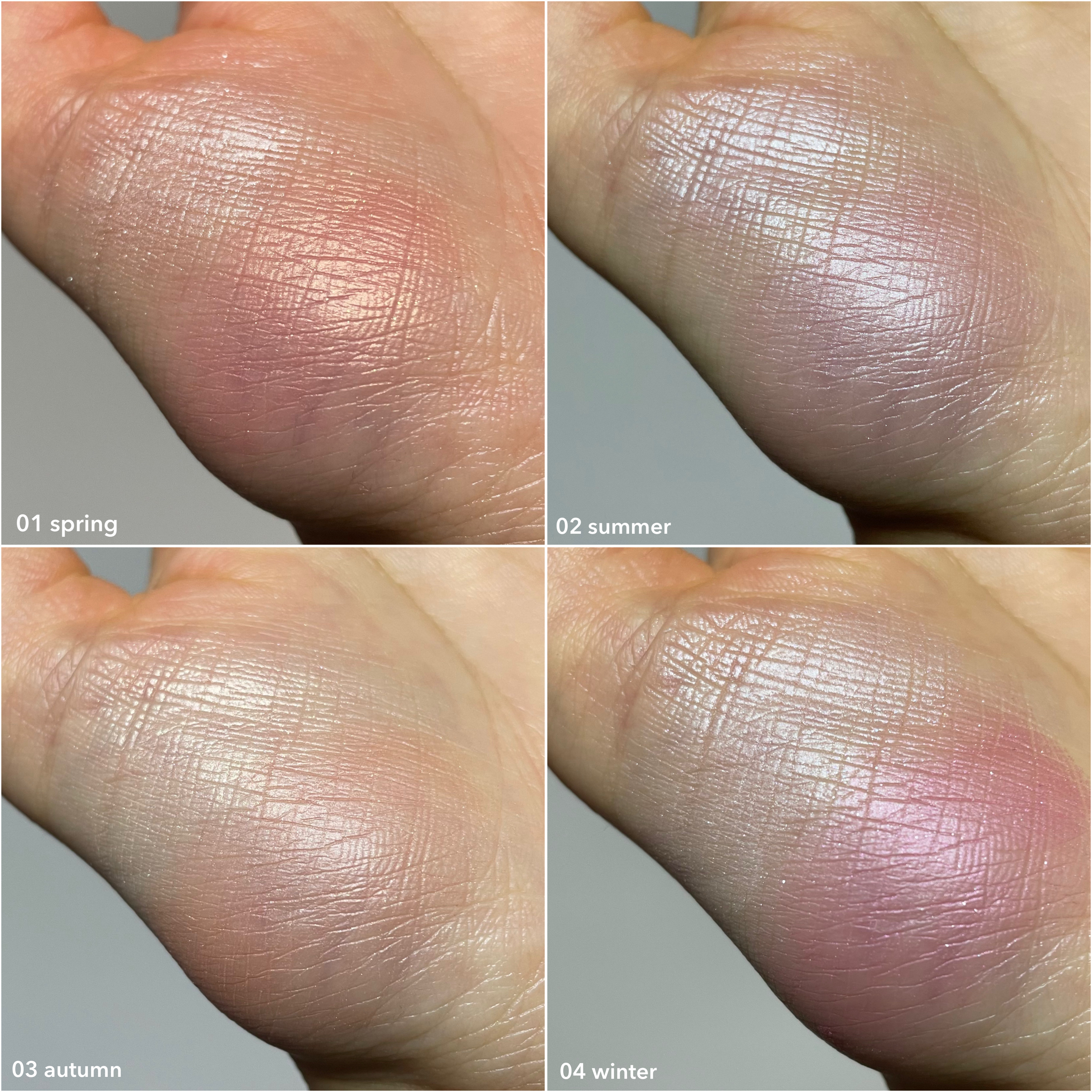 - 【01 spring】 [ハイライト全成分]タルク、エチルヘキサン酸セチル、1,2-ヘキサンジオール、イソステアリン酸グリセリズ、イソステアリン酸ソルビタン、シリカ、ダイマージリノール酸水添ヒマシ油、トコフェロール、ジメチコン、スクワラン、ホホバ種子油、セラミドNP、ヒマワリ種子油、ヒアルロン酸Na、ローズマリー葉エキス、イソドデカン、合成フルオロフロゴパイト、マイカ、酸化チタン、酸化鉄、酸化スズ [チーク全成分]タルク、エチルヘキサン酸セチル、1,2-ヘキサンジオール、イソステアリン酸グリセリズ、イソステアリン酸ソルビタン、シリカ、ダイマージリノール酸水添ヒマシ油、トコフェロール、ジメチコン、スクワラン、ホホバ種子油、セラミドNP、ヒマワリ種子油、ヒアルロン酸Na、ローズマリー葉エキス、イソドデカン、合成フルオロフロゴパイト、マイカ、酸化チタン、酸化鉄、水酸化AI、赤226、黄4、酸化スズ [アイブロー全成分]合成フルオロフロゴパイト、ステアリン酸Mg、イソステアリン酸グリセリズ、スクワラン、ミリスチン酸イソセチル、ホホバ種子油、フェノキシエタノール、エチルヘキシルグリセリン、カプリル酸グリセリル、トコフェロール、(HDI/トリメチロールヘキシルラクトン)クロスポリマー、メタクリル酸メチルクロスポリマー、アロエベラ葉エキス、ヤシ油、タルク、酸化チタン、水酸化AI、酸化鉄、グンジョウ、赤226 【02 summer】 [ハイライト全成分]タルク、エチルヘキサン酸セチル、1,2-ヘキサンジオール、イソステアリン酸グリセリズ、イソステアリン酸ソルビタン、シリカ、ダイマージリノール酸水添ヒマシ油、トコフェロール、ジメチコン、スクワラン、ホホバ種子油、セラミドNP、ヒマワリ種子油、ヒアルロン酸Na、ローズマリー葉エキス、イソドデカン、合成フルオロフロゴパイト、マイカ、酸化チタン、酸化鉄、酸化スズ [チーク全成分]タルク、エチルヘキサン酸セチル、1,2-ヘキサンジオール、イソステアリン酸グリセリズ、イソステアリン酸ソルビタン、シリカ、ダイマージリノール酸水添ヒマシ油、トコフェロール、ジメチコン、スクワラン、ホホバ種子油、セラミドNP、ヒマワリ種子油、ヒアルロン酸Na、ローズマリー葉エキス、イソドデカン、合成フルオロフロゴパイト、マイカ、酸化チタン、酸化鉄、水酸化AI、赤226、黄4、酸化スズ [アイブロー全成分]合成フルオロフロゴパイト、ステアリン酸Mg、イソステアリン酸グリセリズ、スクワラン、ミリスチン酸イソセチル、ホホバ種子油、フェノキシエタノール、エチルヘキシルグリセリン、カプリル酸グリセリル、トコフェロール、(HDI/トリメチロールヘキシルラクトン)クロスポリマー、メタクリル酸メチルクロスポリマー、アロエベラ葉エキス、ヤシ油、タルク、酸化チタン、水酸化AI、酸化鉄、グンジョウ、赤226 【03 autumn】 [ハイライト全成分]タルク、エチルヘキサン酸セチル、1,2-ヘキサンジオール、イソステアリン酸グリセリズ、イソステアリン酸ソルビタン、シリカ、ダイマージリノール酸水添ヒマシ油、トコフェロール、スクワラン、ホホバ種子油、ジメチコン、セラミドNP、ヒマワリ種子油、ヒアルロン酸Na、ローズマリー葉エキス、イソドデカン、合成フルオロフロゴパイト、マイカ、酸化チタン、酸化スズ、酸化鉄 [チーク全成分]タルク、エチルヘキサン酸セチル、1,2-ヘキサンジオール、イソステアリン酸グリセリズ、イソステアリン酸ソルビタン、シリカ、ダイマージリノール酸水添ヒマシ油、トコフェロール、ジメチコン、スクワラン、ホホバ種子油、セラミドNP、ヒマワリ種子油、ヒアルロン酸Na、ローズマリー葉エキス、イソドデカン、合成フルオロフロゴパイト、マイカ、酸化鉄、酸化チタン、水酸化AI、赤226、酸化スズ [アイブロー全成分]合成フルオロフロゴパイト、ステアリン酸Mg、イソステアリン酸グリセリズ、スクワラン、ミリスチン酸イソセチル、ホホバ種子油、フェノキシエタノール、エチルヘキシルグリセリン、カプリル酸グリセリル、トコフェロール、(HDI/トリメチロールヘキシルラクトン)クロスポリマー、メタクリル酸メチルクロスポリマー、アロエベラ葉エキス、ヤシ油、タルク、酸化鉄、酸化チタン、水酸化AI 【04 winter】 [ハイライト全成分]タルク、エチルヘキサン酸セチル、1,2-ヘキサンジオール、イソステアリン酸グリセリズ、イソステアリン酸ソルビタン、シリカ、ダイマージリノール酸水添ヒマシ油、トコフェロール、スクワラン、ホホバ種子油、ジメチコン、セラミドNP、ヒマワリ種子油、ヒアルロン酸Na、ローズマリー葉エキス、イソドデカン、合成フルオロフロゴパイト、マイカ、酸化チタン、酸化スズ、酸化鉄 [チーク全成分]タルク、エチルヘキサン酸セチル、1,2-ヘキサンジオール、イソステアリン酸グリセリズ、イソステアリン酸ソルビタン、シリカ、ダイマージリノール酸水添ヒマシ油、トコフェロール、ジメチコン、スクワラン、ホホバ種子油、セ