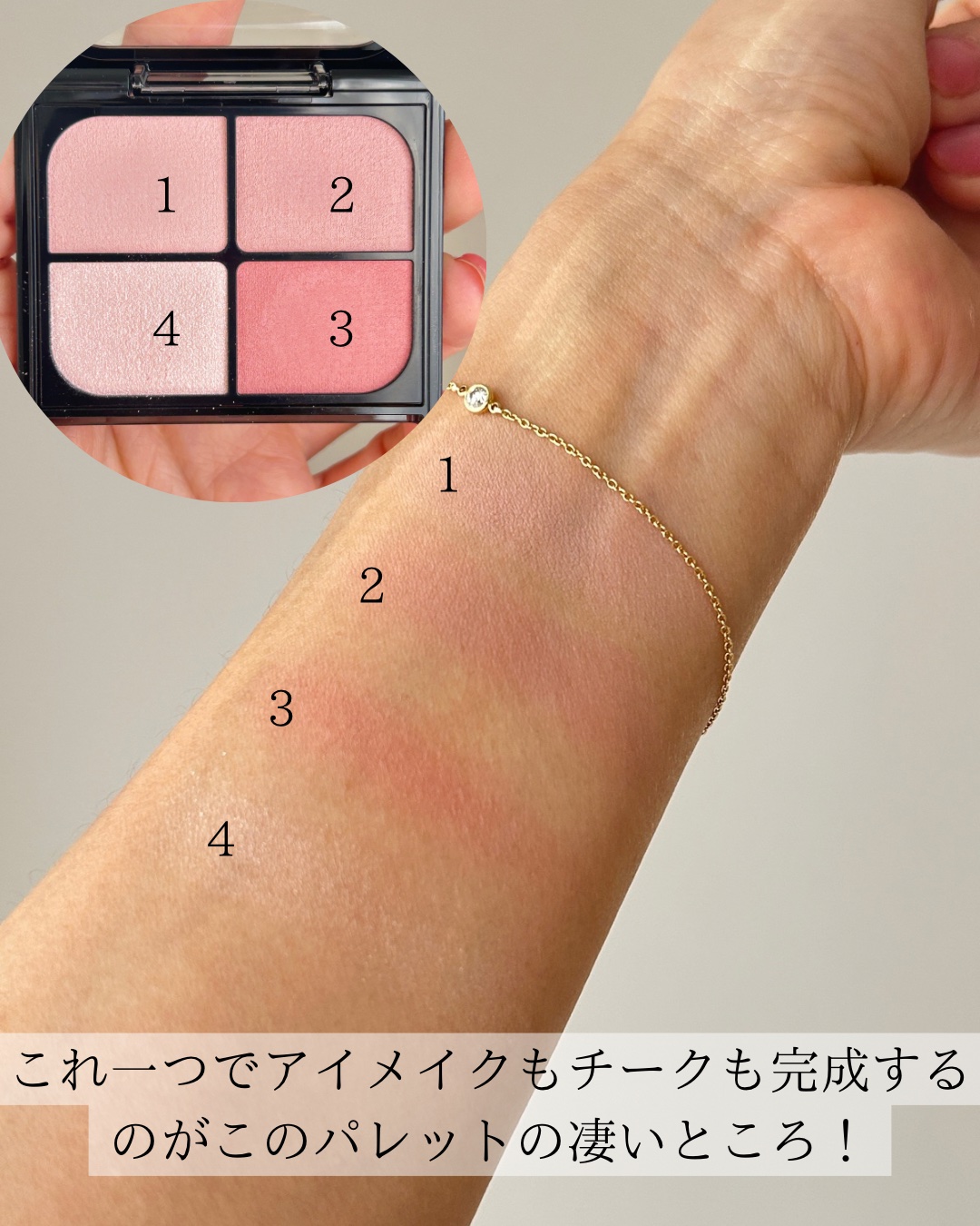 - <BE-1 メルティーベージュ> マイカ、合成フルオロフロゴパイト、ジメチコン、シリカ、ジエチルヘキサン酸ネオペンチルグリコール、ジフェニルシロキシフェニルトリメチコン、イソノナン酸イソトリデシル、ダイマージリノール酸(フィトステリル/イソステアリル/セチル/ステアリル/ベヘニル)、リンゴ酸ジイソステアリル、コーンスターチ、窒化ホウ素、ステアリン酸亜鉛、(ジメチコン/ビニルジメチコン)クロスポリマー、ミリスチン酸Mg、トコフェロール、ミリスチン酸亜鉛、イソステアリン酸ソルビタン、水添ポリイソブテン、エチルパラベン、メチルパラベン、デヒドロ酢酸Na、(+/-)アルミナ、グンジョウ、コンジョウ、パルミチン酸、ラウロイルアスパラギン酸Na、塩化亜鉛、酸化チタン、酸化亜鉛、酸化鉄、水酸化Al、硫酸Ba、トリイソステアリン酸イソプロピルチタン、酸化スズ、ホウケイ酸(Ca/Al)、黄4、赤202、赤226 <MV-1 スノーモーヴ> マイカ、合成フルオロフロゴパイト、ジメチコン、シリカ、ジエチルヘキサン酸ネオペンチルグリコール、ジフェニルシロキシフェニルトリメチコン、イソノナン酸イソトリデシル、ダイマージリノール酸(フィトステリル/イソステアリル/セチル/ステアリル/ベヘニル)、リンゴ酸ジイソステアリル、コーンスターチ、窒化ホウ素、ステアリン酸亜鉛、(ジメチコン/ビニルジメチコン)クロスポリマー、ミリスチン酸Mg、トコフェロール、ミリスチン酸亜鉛、イソステアリン酸ソルビタン、水添ポリイソブテン、エチルパラベン、メチルパラベン、デヒドロ酢酸Na、(+/-)アルミナ、グンジョウ、コンジョウ、パルミチン酸、ラウロイルアスパラギン酸Na、塩化亜鉛、酸化チタン、酸化亜鉛、酸化鉄、水酸化Al、硫酸Ba、トリイソステアリン酸イソプロピルチタン、酸化スズ、ホウケイ酸(Ca/Al)、黄4、赤202、赤226 <OR-1 パウダリーアプリコット> マイカ、合成フルオロフロゴパイト、ジメチコン、シリカ、ジエチルヘキサン酸ネオペンチルグリコール、ジフェニルシロキシフェニルトリメチコン、イソノナン酸イソトリデシル、ダイマージリノール酸(フィトステリル/イソステアリル/セチル/ステアリル/ベヘニル)、リンゴ酸ジイソステアリル、コーンスターチ、窒化ホウ素、ステアリン酸亜鉛、(ジメチコン/ビニルジメチコン)クロスポリマー、ミリスチン酸Mg、トコフェロール、ミリスチン酸亜鉛、イソステアリン酸ソルビタン、水添ポリイソブテン、エチルパラベン、メチルパラベン、デヒドロ酢酸Na、(+/-)アルミナ、グンジョウ、コンジョウ、パルミチン酸、ラウロイルアスパラギン酸Na、塩化亜鉛、酸化チタン、酸化亜鉛、酸化鉄、水酸化Al、硫酸Ba、トリイソステアリン酸イソプロピルチタン、酸化スズ、ホウケイ酸(Ca/Al)、黄4、赤202、赤226 <PK-1 ウォームピーチ> マイカ、合成フルオロフロゴパイト、ジメチコン、シリカ、ジエチルヘキサン酸ネオペンチルグリコール、ジフェニルシロキシフェニルトリメチコン、イソノナン酸イソトリデシル、ダイマージリノール酸(フィトステリル/イソステアリル/セチル/ステアリル/ベヘニル)、リンゴ酸ジイソステアリル、コーンスターチ、窒化ホウ素、ステアリン酸亜鉛、(ジメチコン/ビニルジメチコン)クロスポリマー、ミリスチン酸Mg、トコフェロール、ミリスチン酸亜鉛、イソステアリン酸ソルビタン、水添ポリイソブテン、エチルパラベン、メチルパラベン、デヒドロ酢酸Na、(+/-)アルミナ、グンジョウ、コンジョウ、パルミチン酸、ラウロイルアスパラギン酸Na、塩化亜鉛、酸化チタン、酸化亜鉛、酸化鉄、水酸化Al、硫酸Ba、トリイソステアリン酸イソプロピルチタン、酸化スズ、ホウケイ酸(Ca/Al)、黄4、赤202、赤226 <PK-2 ピンクムース> マイカ、合成フルオロフロゴパイト、ジメチコン、シリカ、ジエチルヘキサン酸ネオペンチルグリコール、ジフェニルシロキシフェニルトリメチコン、イソノナン酸イソトリデシル、ダイマージリノール酸(フィトステリル/イソステアリル/セチル/ステアリル/ベヘニル)、リンゴ酸ジイソステアリル、コーンスターチ、窒化ホウ素、ステアリン酸亜鉛、(ジメチコン/ビニルジメチコン)クロスポリマー、ミリスチン酸Mg、トコフェロール、ミリスチン酸亜鉛、イソステアリン酸ソルビタン、水添ポリイソブテン、エチルパラベン、メチルパラベン、デヒドロ酢酸Na、(+/-)アルミナ、グンジョウ、コンジョウ、パルミチン酸、ラウロイルアスパラギン酸Na、塩化亜鉛、酸化チタン、酸化亜鉛、酸化鉄、水酸化Al、硫酸Ba、トリイソステアリン酸イソプロピルチタン、酸化スズ、ホウケイ酸(Ca/Al)、黄4、赤202、赤226