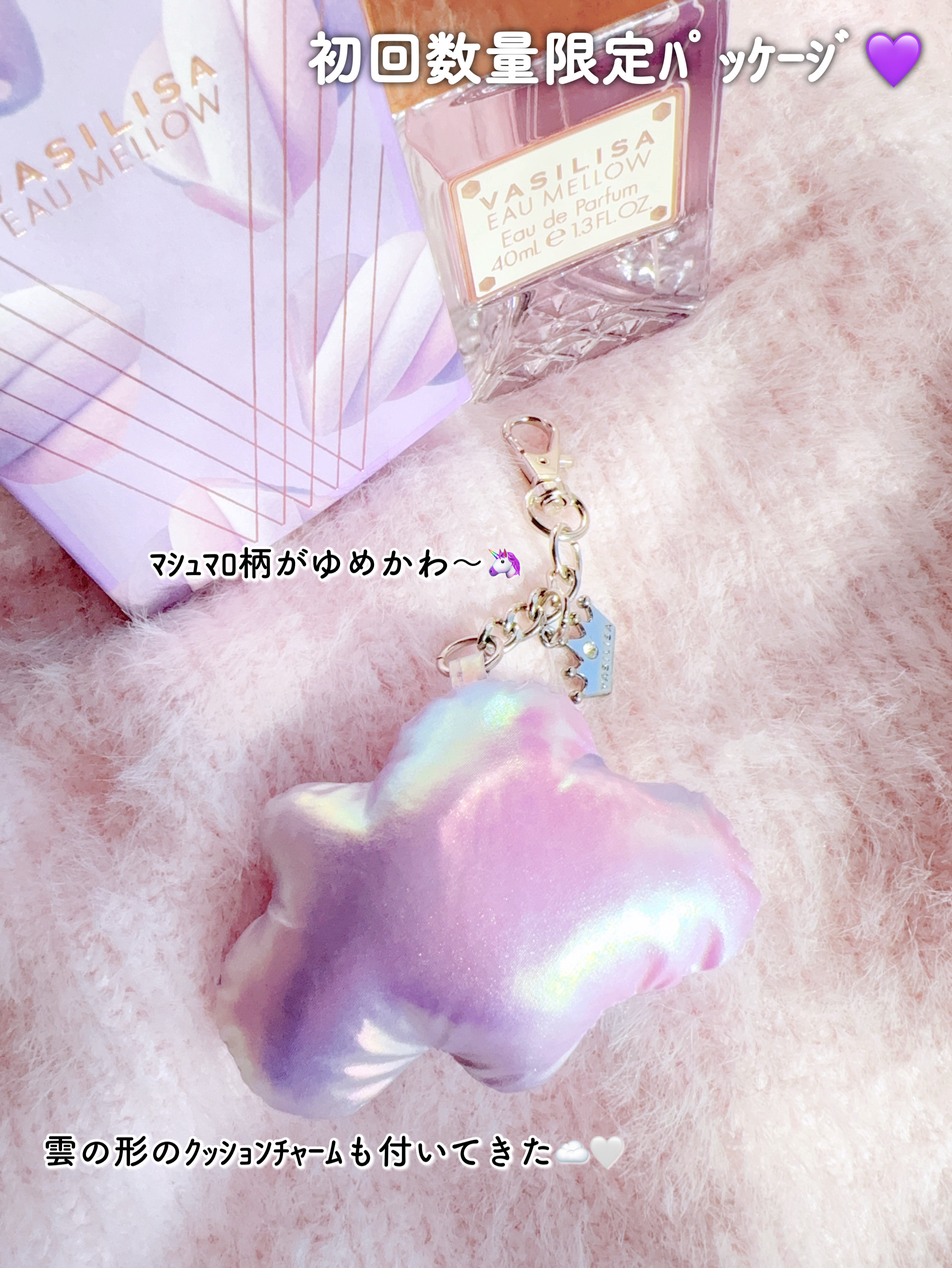 - 軽やかなパープルに包まれ、まっすぐな眼差しで“甘さと芯の強さ”を表現。 ふんわりマシュマロ香る新作「オー メロウ オードパルファム」が発売 キー香料は、ふんわり甘いマシュマロ。 ジューシーなピーチとブルーベリーに、バニラオーキッドがしなやかな芯を添えます。 フルーティな甘さがやわらかいマシュマロを感じさせる香りです。 ボトルデザインの基調となるのは、軽やかながらもどこか芯の強さや意思を感じさせるパープル。 「オー メロウ」のコンセプトである“内に秘めた、芯のある女性”を表現しています。 【初回数量限定パッケージ】 「オー メロウ」の発売を記念して、オリジナルチャーム付きの初回限定パッケージが登場。 パッケージには、雲のように浮かぶマシュマロを大胆にデザインしました。 付属のチャームは、キラキラとした雲型クッションに、VASILISA の刻印入り“女王の王冠”を添えた特別仕様です。 ※数量限定、なくなり次第終了 <40mL> 1月17日(土) 全国のバラエティショップ、ディスカウントストア等 オンラインストア「FITS you. STORE」 https://store.fits-japan.com/shop、楽天市場、Qoo10 等 <8mL> 1月17日(土) 全国のロフト、PLAZA、アインズ&トルペ(※一部店舗を除く) オンラインストア「FITS you. STORE」 https://store.fits-japan.com/shop 等 2月28日(土) 全国のバラエティショップ、ディスカウントストア等 一般発売に先立ち、1月7日(水)より@cosmeTOKYO 特設売り場にて先行発売を行うほか、FITS ONLINE STORE 楽天市場店にて先行予約を開始いたします。