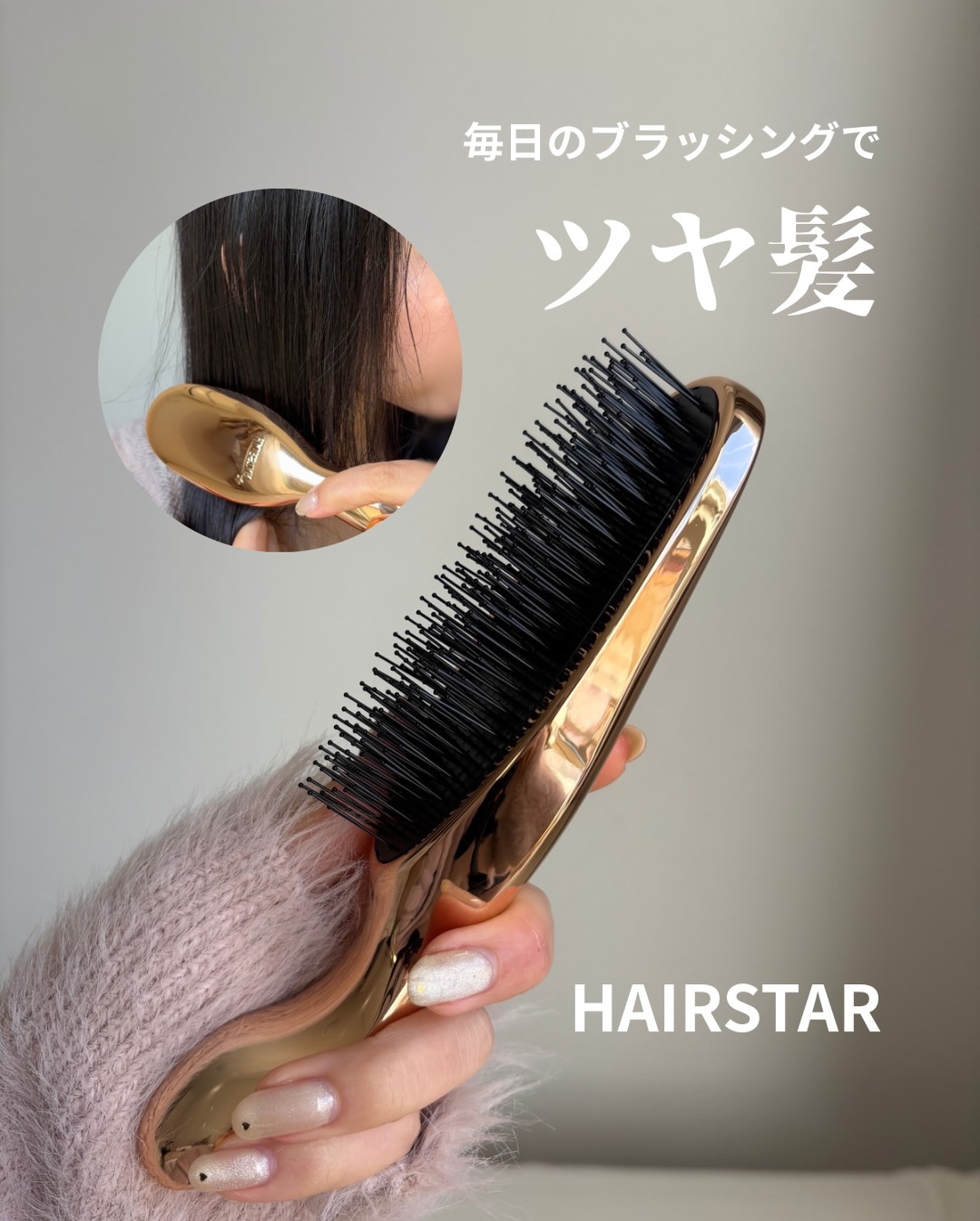 \静電気が起きにくい素材×頭の形にフィットするラウンド形状/【HAIRSTARイオンスターブラシピンクゴールド】静電気抑制素材が使われているからキューティクルが乱れず、ツルンと整うの✨なめらかにとかせて、ツヤっとまとまるよ。頭のカーブに沿う形...
