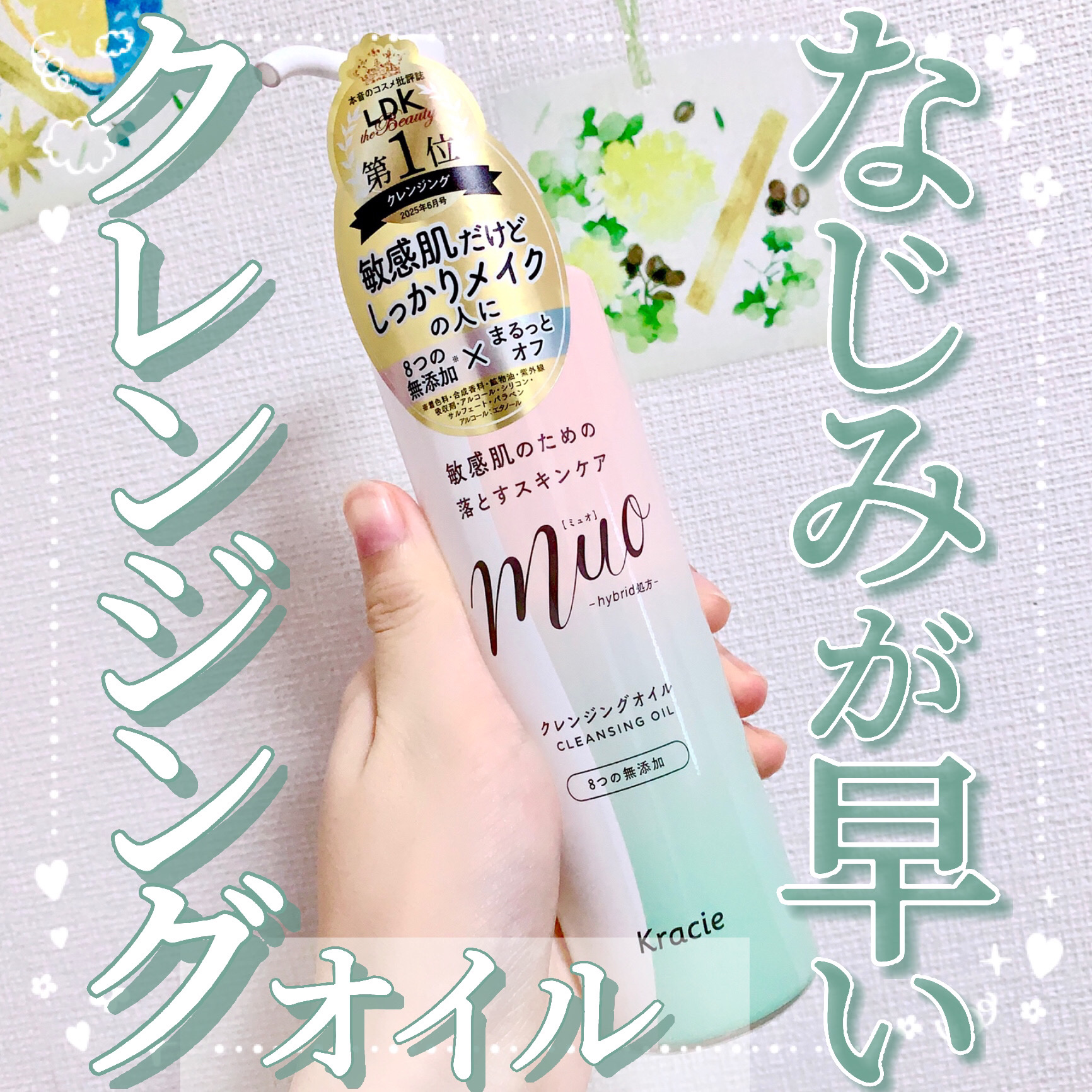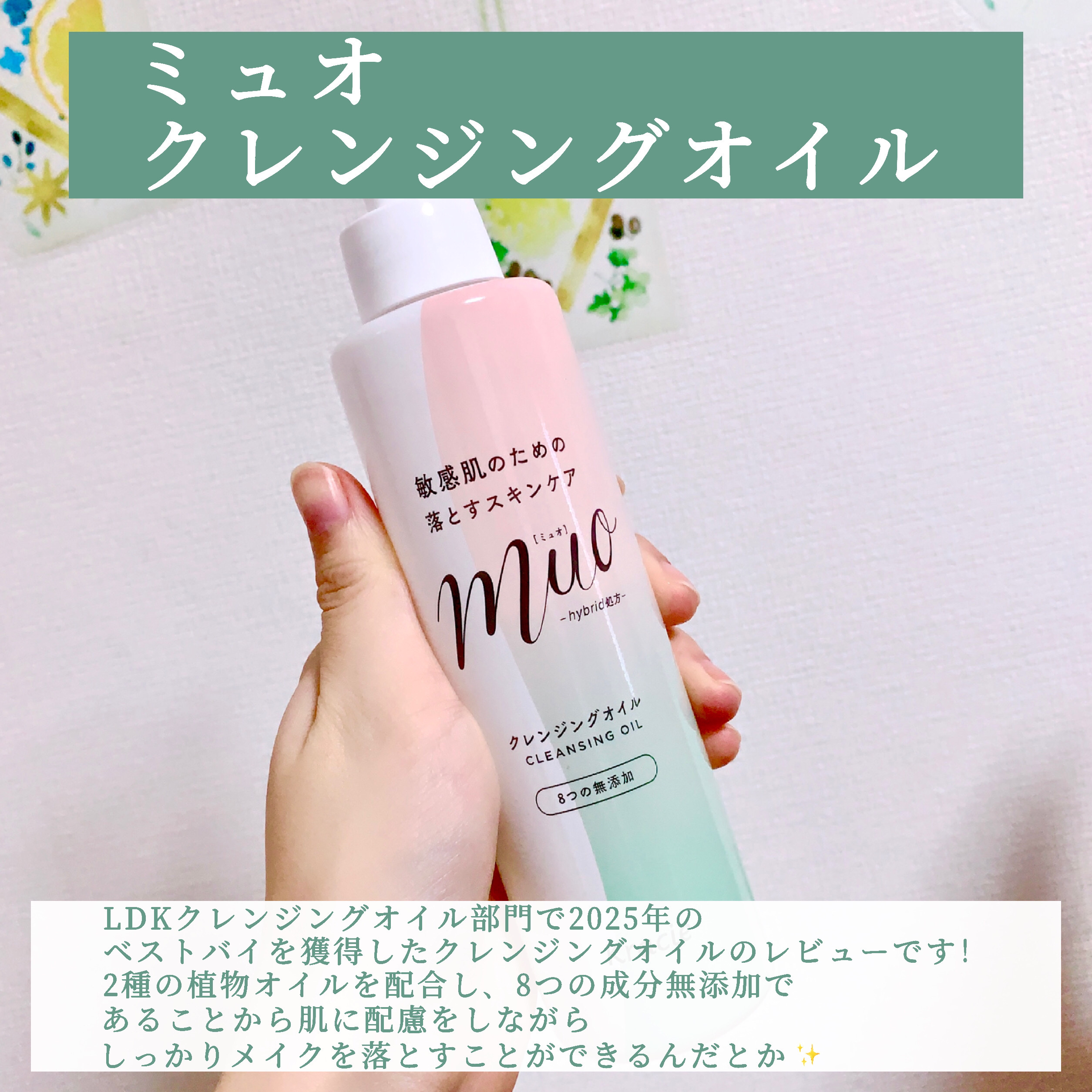 muoミュオクレンジングオイルLDKのクレンジングオイル部門で2025年のベストバイ(1位)を獲得🥇メイクの落ちも肌への配慮♡無添加のクレンジングオイル・2種の植物オイルを配合したhybrid処方・2種の植物エキス(うるおい成分)配合で、うる...