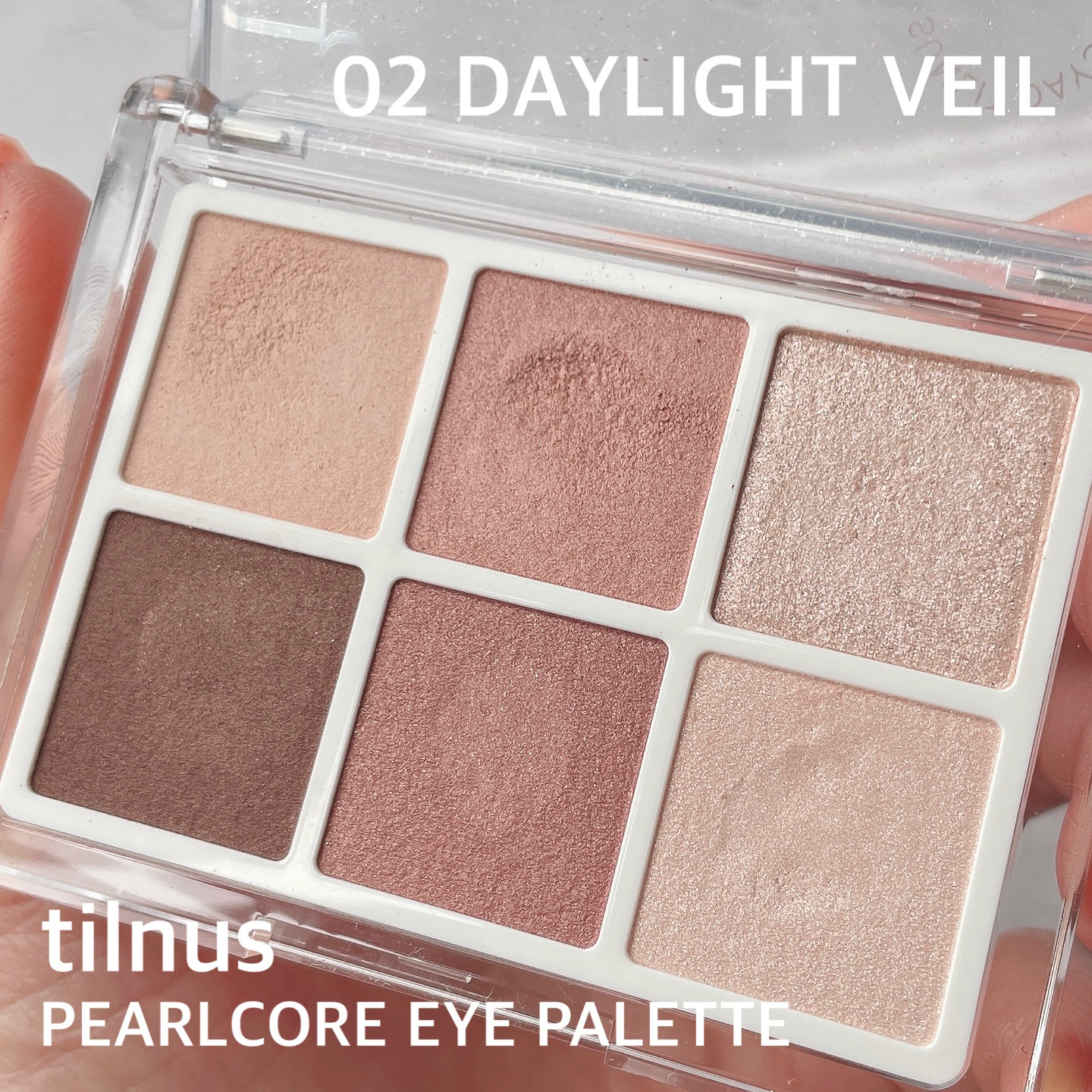 ・tilnusパールコアアイパレット02デイライトヴェール全体的にふわっとした発色とパールカラーとラメ感が綺麗なパレットナチュラルにも華やかにも使える温かみのあるカラーが可愛い右側のカラーはハイライトにも◎#tilnus#ティルナス#パールコ...