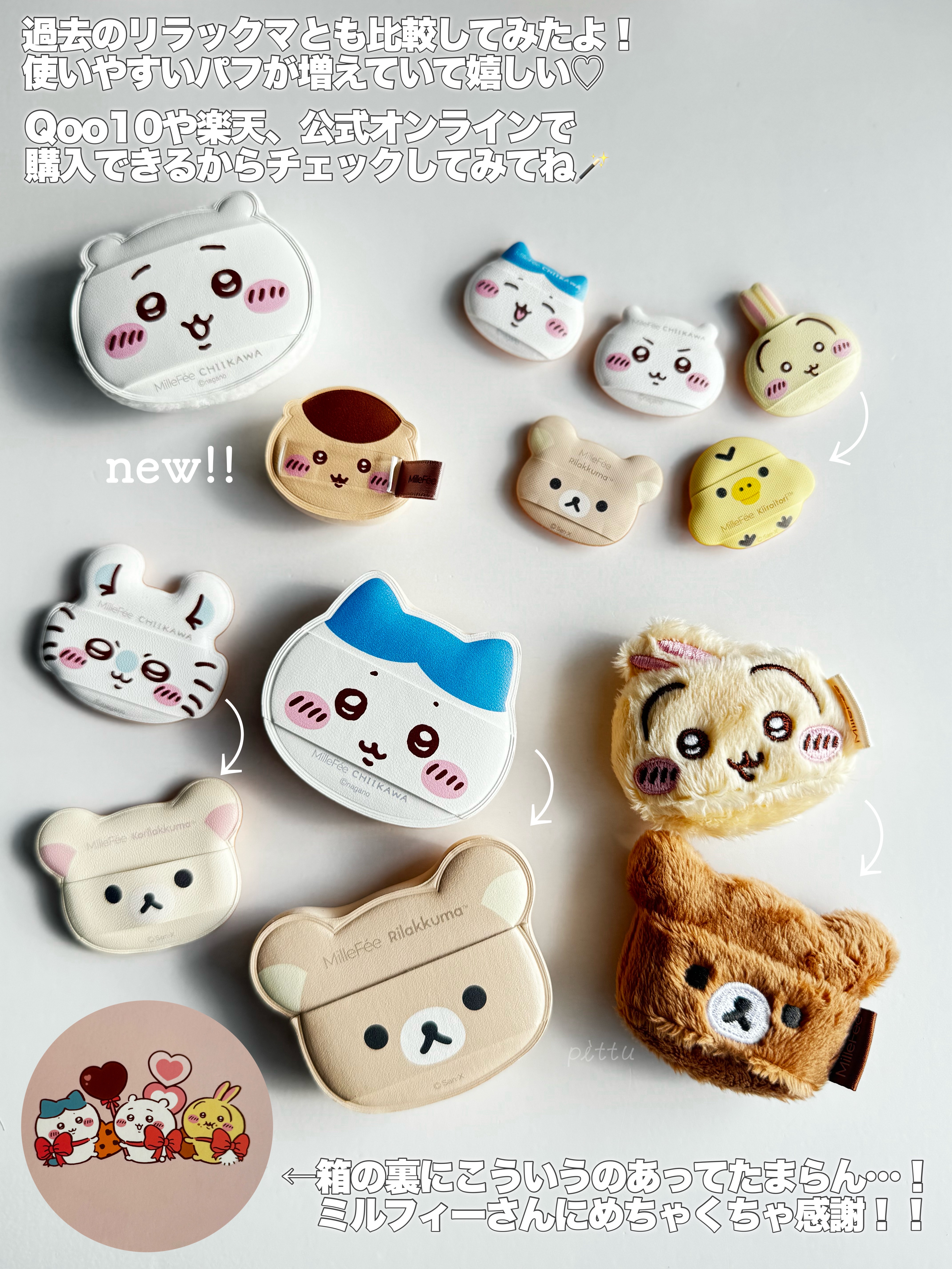 \MilleFeeちいかわパフ新登場♡/:ちいかわファン大歓喜♡:1月23日(金)11:00〜ちいかわマーケット、MilleFee公式ほかQoo10・楽天・Amazonなどで順次販売【ちいかわメイクパフコンプリートボックス】が登場!!!-ボッ...