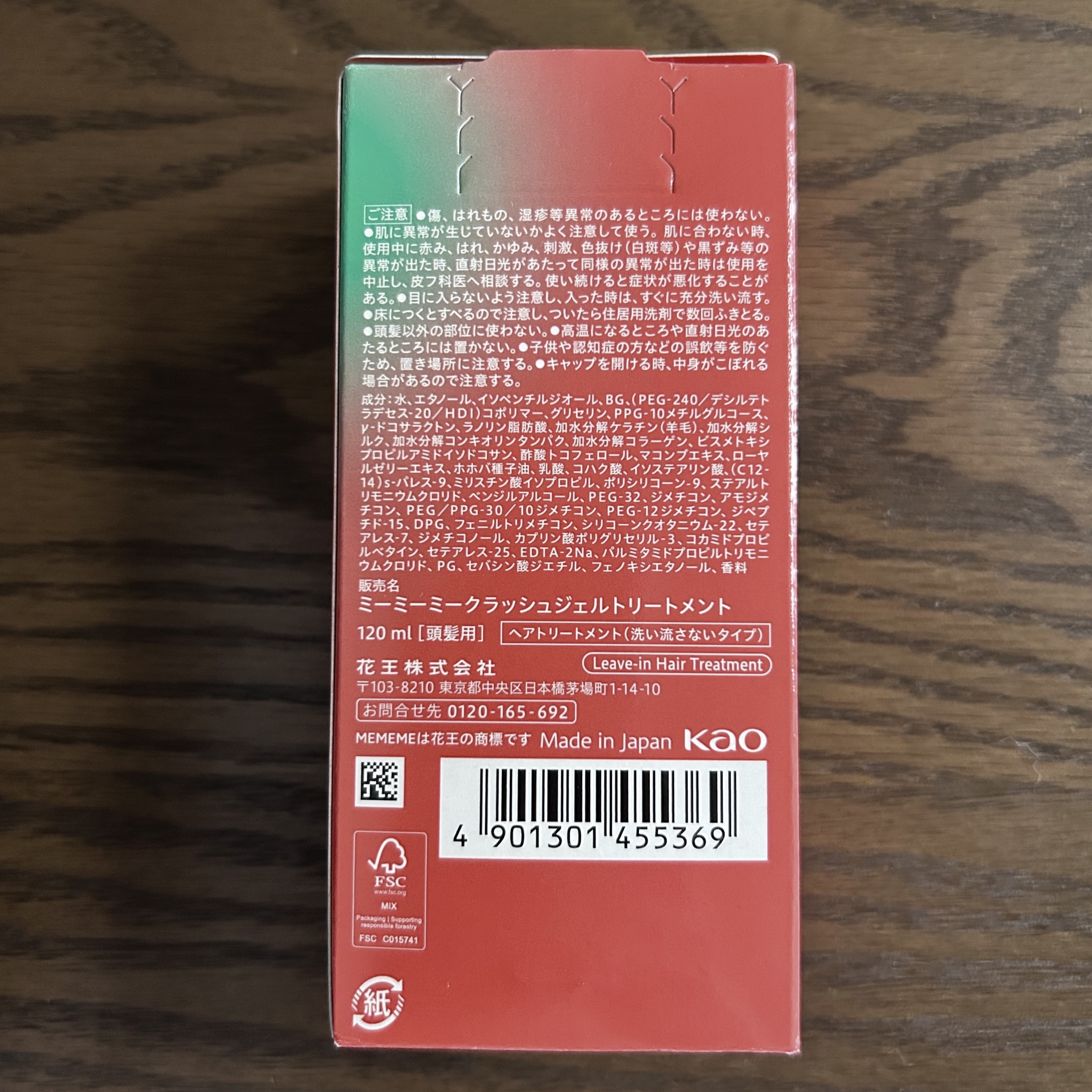 - <120mL> 水、エタノール、イソペンチルジオール、BG、(PEG-240/デシルテトラデセス-20/HDI)コポリマー、グリセリン、PPG-10メチルグルコース、γ-ドコサラクトン、ラノリン脂肪酸、加水分解ケラチン(羊毛)、加水分解シルク、加水分解コンキオリンタンパク、加水分解コラーゲン、ビスメトキシプロピルアミドイソドコサン、酢酸トコフェロール、マコンブエキス、ローヤルゼリーエキス、ホホバ種子油、乳酸、コハク酸、イソステアリン酸、(C12-14)s-パレス-9、ミリスチン酸イソプロピル、ポリシリコーン-9、ステアルトリモニウムクロリド、ベンジルアルコール、PEG-32、ジメチコン、アモジメチコン、PEG/PPG-30/10ジメチコン、PEG-12ジメチコン、ジペプチド-15、DPG、フェニルトリメチコン、シリコーンクオタニウム-22、セテアレス-7、ジメチコノール、カプリン酸ポリグリセリル-3、コカミドプロピルベタイン、セテアレス-25、EDTA-2Na、パルミタミドプロピルトリモニウムクロリド、PG、セバシン酸ジエチル、フェノキシエタノール、香料