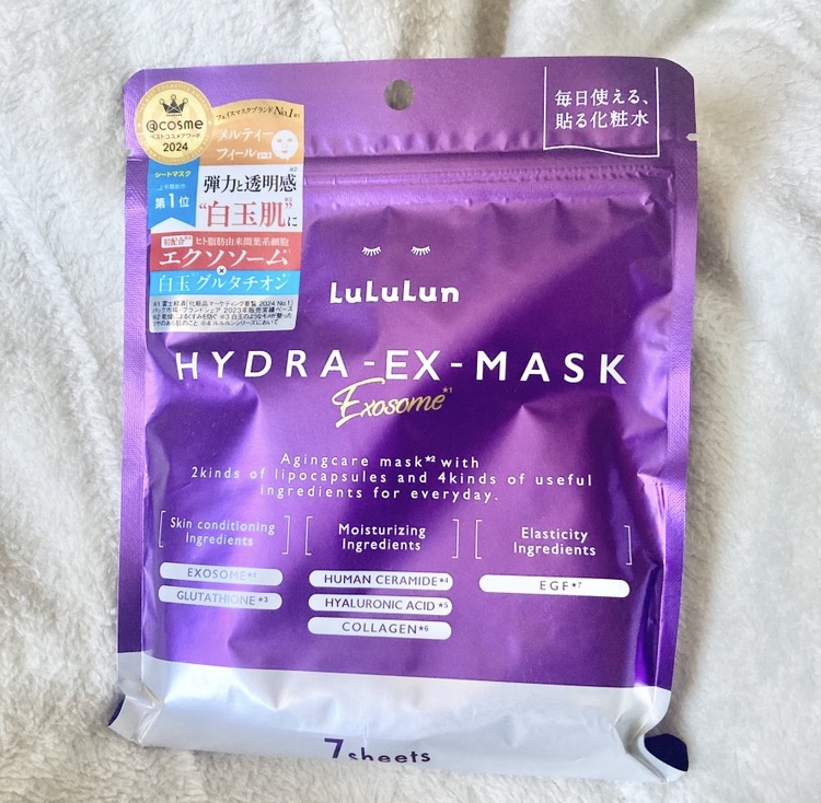 バズりすぎて今も売り切れや購入制限続出のルルルン ハイドラ EX マスク🤍 先端再生医療にインスパイアされたデイリーエイジングケアマスクで、日本製ヒト脂肪由来間葉系細胞エクソソームと白玉グルタチオンという今話題の成分が配合されています🔎 とろけるような柔らかいシートでつけると気持ちよくて、さすがルルルンとなりました🥰 しっかり保湿して透明感のある肌に ルルルン共通のいいところはそのままに、肌のハリツヤケアができてこの価格はバズるのも納得です💯