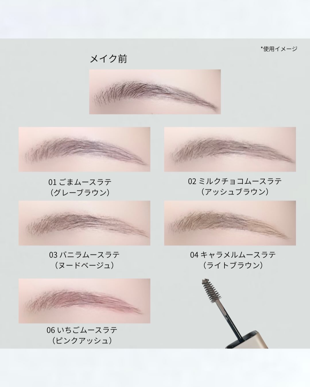 - \NO MORE パリパリ眉!/ 1日*ずっと、ほわっふわ眉。ムラなく色づき、黒眉ミュート ★商品特徴 ①エアリームーステクスチャー 空気とパウダーを混ぜて泡立てたような、軽やかなホイップムーステクスチャーだから、 べったりつかず、固くならない。ふわふわ仕上がり24時間*つづく。 ②テク要らずミニブラシ 先端に向かって細くなるブラシが、細かい毛も余さずキャッチするから、眉頭から眉尻まで均一にムラなく塗れる。 ③全5色展開 なりたい印象に合わせて選べる5色展開。 自眉の黒を消して存在感を抑えたい方にも、髪色に合わせた自然な眉にしたい方にも。 ★カラー展開 -ピンクアッシュ :いちごムースラテ -ライトブラウン :キャラメルムースラテ -ヌードベージュ :バニラムースラテ -アッシュブラウン:ミルクチョコムースラテ -グレーブラウン :ごまムースラテ * メイベリンニューヨーク調べ。個人差があります。