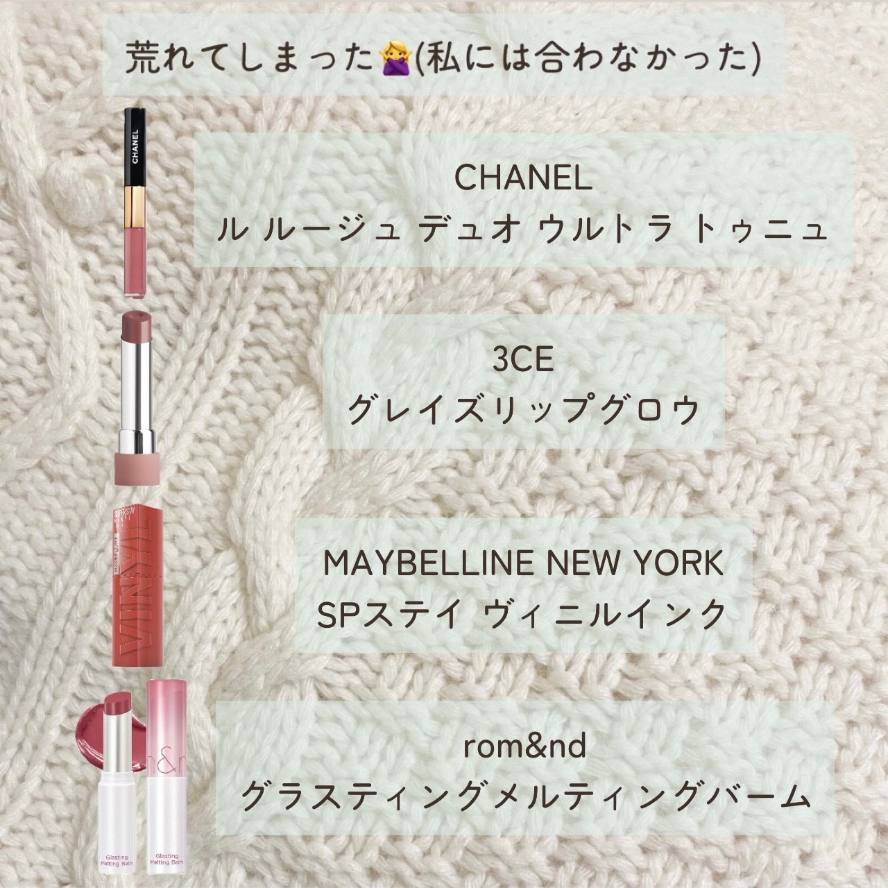 超唇敏感で、さまざまな唇の状態に合わせて塗るリップや薬を変えているリップケアオタクです! ティントや口紅を可愛く塗るため、皮剥けをなるべくさせないように、してしまったらなるべく早く治るよう日々使用するものを変えています◎ 反響が大きければ、ひとつひとつの細かい解説を載せようと思っているので、気になった方はぜひいいねや保存、コメントよろしくお願いします🎵