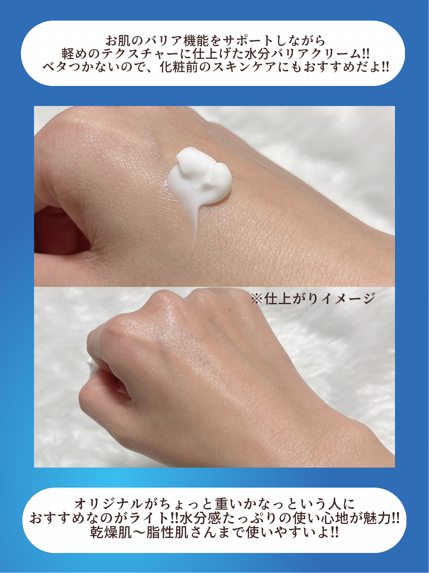 | みずみずしいジェルクリームの心地よさ🫧 さらっとしたつけ心地で、朝のスキンケアにも使いやすいテクスチャー🌊 | 詳細を見る |