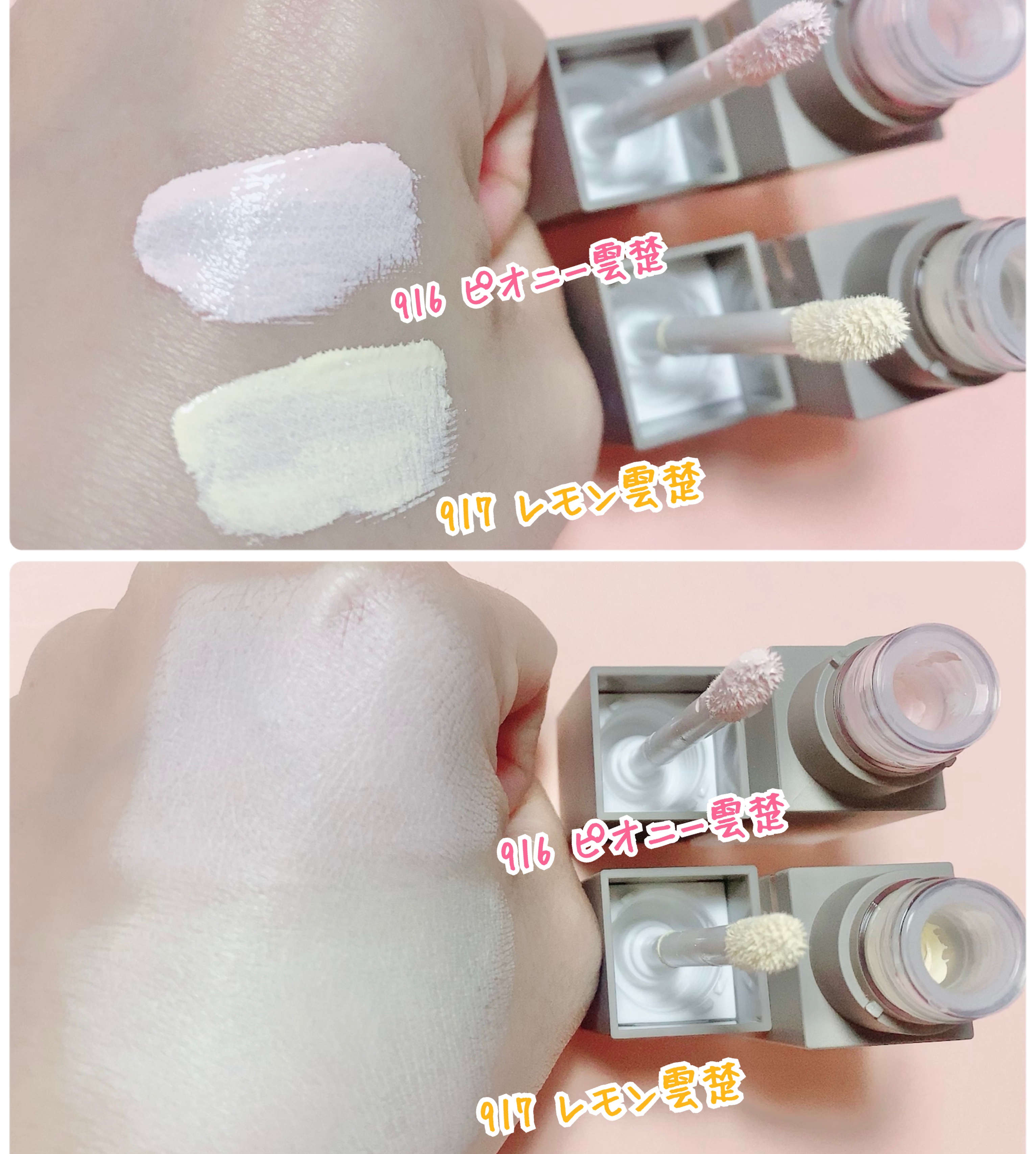 - <914 ライラック雲楚> 精製水、チタンジオキシド、イソドデケイン、トライメチルシロキシシリケート、ポリプロピルシルセスキオキセイン、ポリグリセリル-3ポリジメチルシロキシエチルジメチコン、ヒドロゲネチドポリ(C6-14オレフィン)、フェニルトライメチコン、グリセリン、ウルトラマリン、メチルメタクリレートクロスポリマー、カプリリルメチコン、ダイステアーダイモニウムヘクトライト、1,2-ヘキサンジオール、ポリグリセリル-3ポリリシノリエイト、マグネシウムスルフェイト、ダイメティコン/ビニールダイメティコンクロスポリマー、ソルビタンセスキオリエイト、ダイメティコンクロスポリマー、アルミニウムヒドロキシド、トライエトキシカプリリルシレイン、赤色酸化鉄、アラントイン、エチルヘキシルグリセリン、パンテノール、香料、ベンジルベンゾエイト、リナルール、シトロネルオール、アミールシンナムアル、ヘキシルシンナムアル、ユゼノール、シンナミルアルコール、ブチレングライコール、オクラ果実エキス、麻根エキス、カプリルヒドロキサミックアシッド、トコフェロール、メキシカンチア種子エキス、亜麻種子エキス、ナトリウムソイヒドロライズドコラーゲン、ブドウ皮エキス、レモンエキス、ラベンダー花エキス <915 ピーチ雲楚> 精製水、チタンジオキシド、イソドデケイン、トライメチルシロキシシリケート、フェニルトライメティコン、ポリグリセリル-3ポリジメチルシロキシエチルジメチコン、ヒドロゲネチドポリデセン、グリセリン、ポリプロピルシルセスキオキセイン、ポリグリセリル-3ポリリシノリエイト、黄色酸化鉄、ダイステアダイモニウムヘクトライト、1,2-ヘキサンジオール、ジメチコンクロスポリマー、メチルメタクリル酸塩、マグネシウムスルフェート、赤色酸化鉄、ダイメティコン/ビニールダイメティコンクロスポリマー、アルミハイドロキサイド、ソルビタンセスキオリエイト、トライエトキシカプリリルシレイン、アラントイン、エチルヘキシルグリセリン、パンテノール、黒色酸化鉄、香料、ベンジルベンゾエイト、リナルール、シトロネルオール、アミールシンナムアル、ヘキシルシンナムアル、ユゼノール、シンナミルアルコール、ブチレングライコール、オクラの実エキス、麻根エキス、カプリルヒドロキサミックアシッド、メキシカンチア種子エキス、トコフェロール、亜麻種子エキス、ソジウムソイヒドロライズドコラーゲン、ぶどう皮エキス、レモンエキス、ラベンダー花エキス