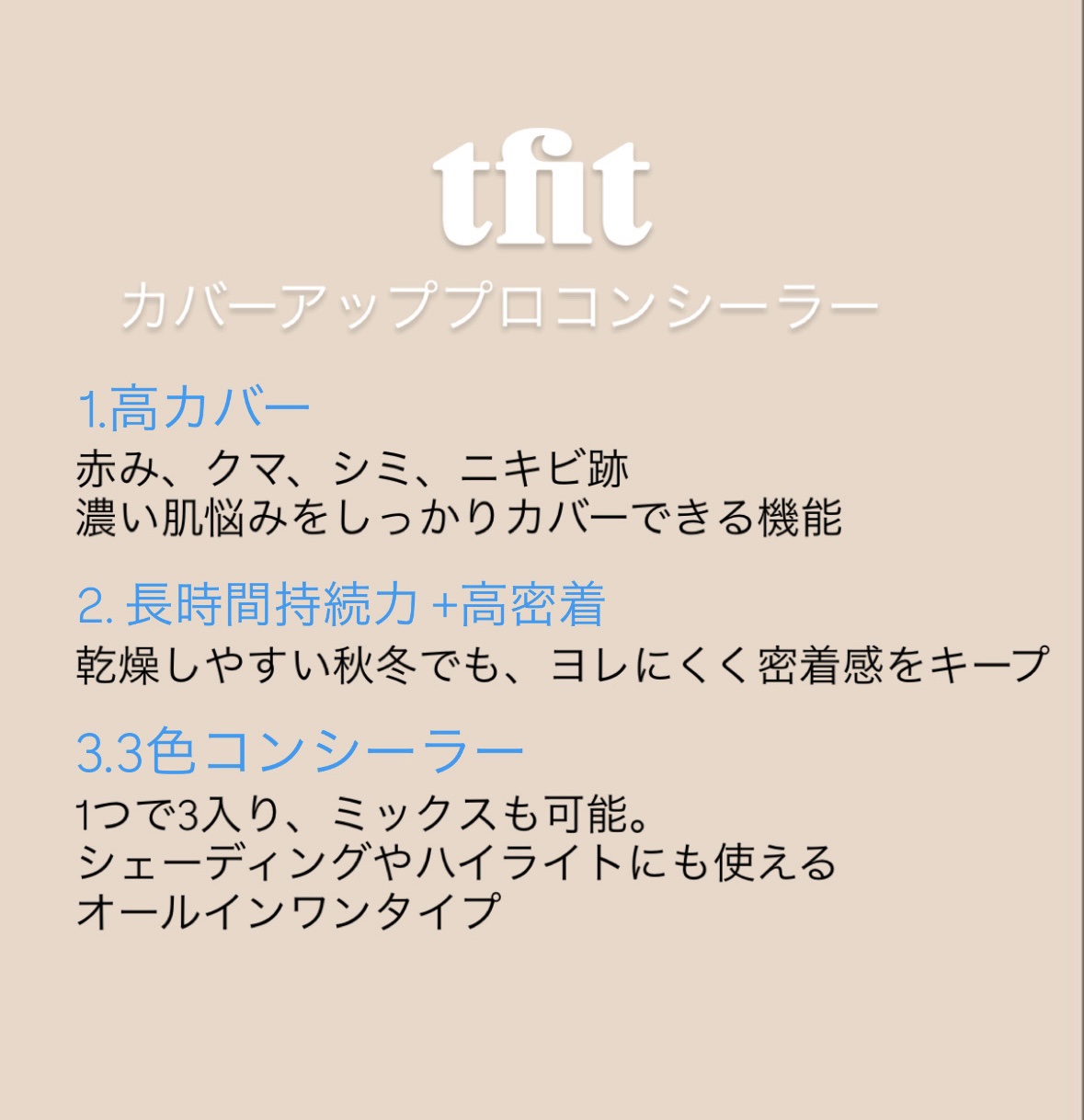 #PR#TFITカバーアッププロコンシーラーそれぞれ役割のある3色コンシーラーで、肌の温度で溶かして使用するとより柔らかく密着力もアップさせながらカバーすることができます💕💕#コンシーラー#ベースメイク#高カバー@tfit.japan...