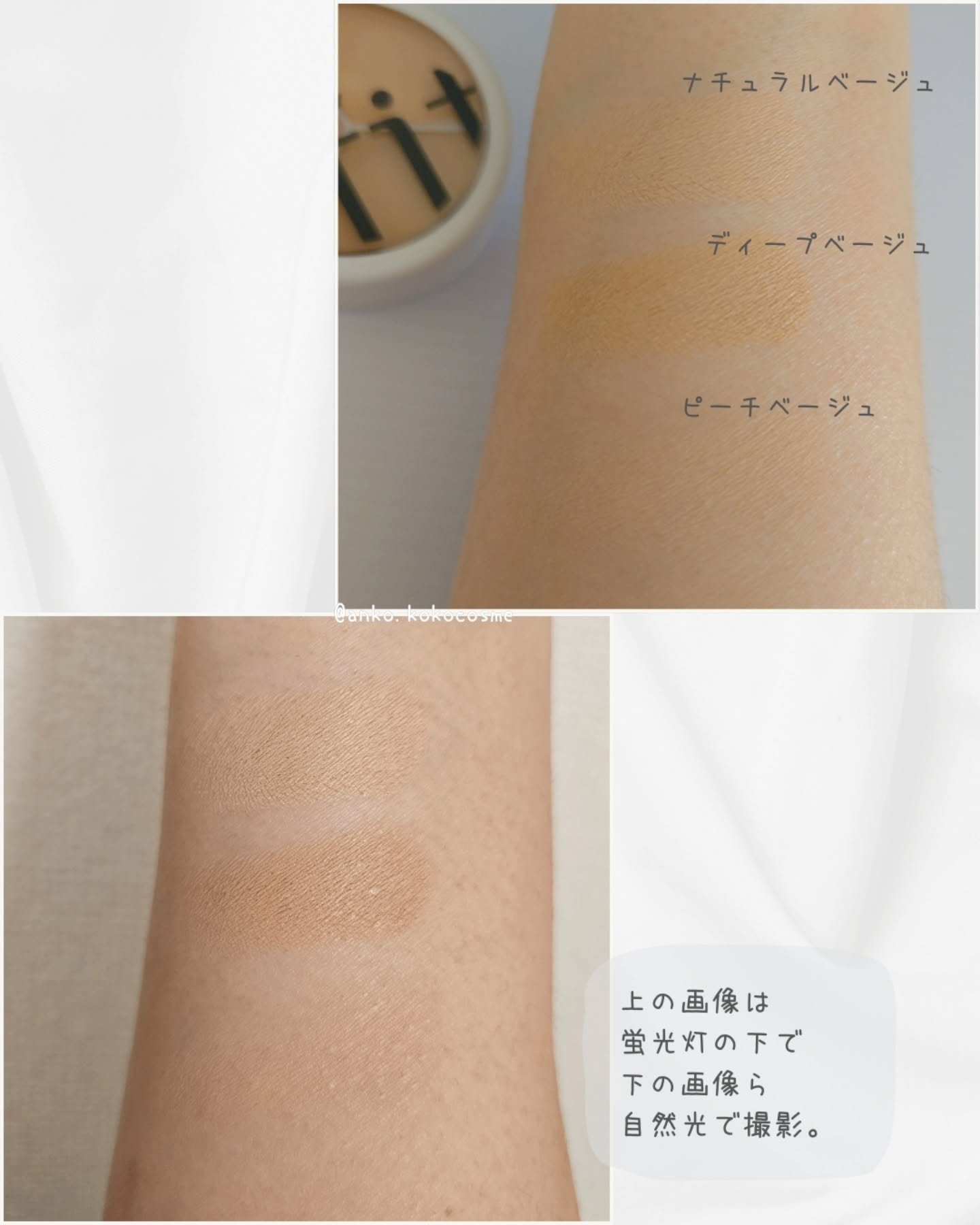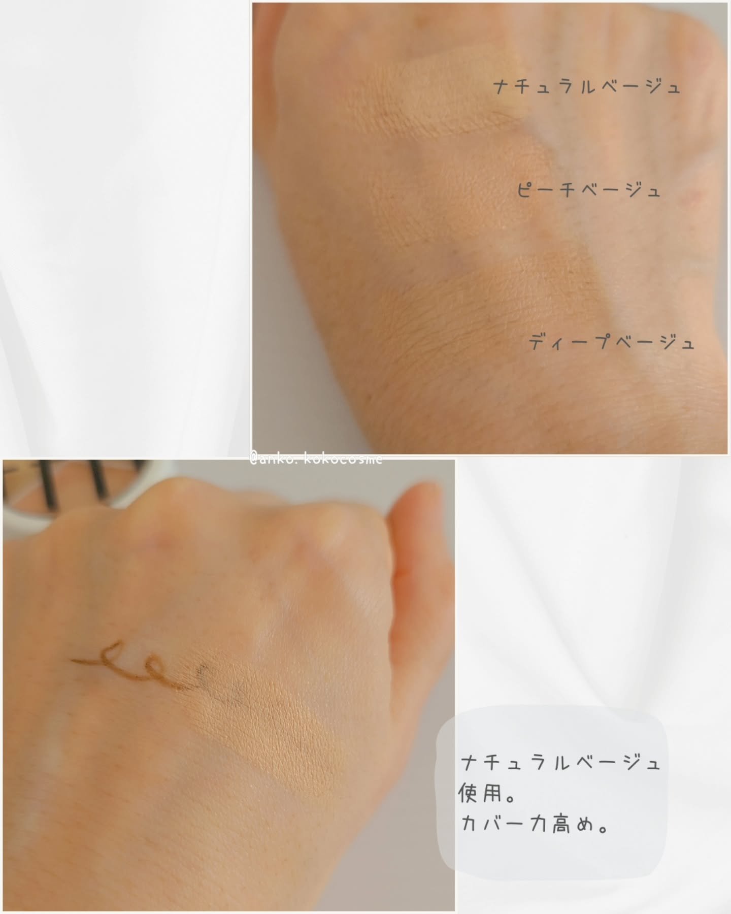 - <クール> [アイボリーベージュ] トリ(カプリル酸/カプリン酸)グリセリル、酸化チタン、ポリイソブテン、メタクリル酸メチルクロスポリマー、ネオペンタン酸イソデシル、マイカ、水添ヒマシ油、エチルヘキサン酸セテアリル、リンゴ酸ジイソステアリル、ビスジグリセリルポリアシルアジペート-2、パラフィン、酸化鉄、1,2-ヘキサンジオール、セスキオレイン酸ソルビタン、水酸化Al [ナチュラルベージュ] トリ(カプリル酸/カプリン酸)グリセリル、酸化チタン、メタクリル酸メチルクロスポリマー、ポリイソブテン、ネオペンタン酸イソデシル、水添ヒマシ油、エチルヘキサン酸セテアリル、酸化鉄、ヘキサ(ヒドロキシステアリン酸/ステアリン酸/ロジン酸)ジペンタエリスリチル、リンゴ酸ジイソステアリル、マイカ、パラフィン、水酸化Al、1,2-ヘキサンジオール、セスキオレイン酸ソルビタン [ピンクベージュ] トリ(カプリル酸/カプリン酸)グリセリル、酸化チタン、ポリイソブテン、メタクリル酸メチルクロスポリマー、ネオペンタン酸イソデシル、マイカ、水添ヒマシ油、エチルヘキサン酸セテアリル、リンゴ酸ジイソステアリル、ビスジグリセリルポリアシルアジペート-2、酸化鉄、パラフィン、1,2-ヘキサンジオール、セスキオレイン酸ソルビタン、水酸化Al [1%未満の共通成分] 水、BG、加水分解ヒアルロン酸、セラミドNP、トリュフエキス、ツベルマグナツムエキス、エチルヘキシルグリセリン、ヒアルロン酸Na、グリセリン、グリシン、セリン、グルタミン酸、アスパラギン酸、ロイシン、アラニン、リシン、アルギニン、チロシン、フェニルアラニン、トレオニン、バリン、プロリン、イソロイシン、ヒスチジン、システイン、メチオニン、マイクロクリスタリンワックス、メチコン、カプリリルグリコール、スクワラン、パンテノール、乳酸桿菌培養溶解質、BHT、糖脂質、オレイン酸ポリグリセリル-10、レスベラトロール、水添レシチン <ニュートラル> [ダークベージュ]トリ(カプリル酸/カプリン酸)グリセリル、酸化チタン、メタクリル酸メチルクロスポリマー、酸化鉄、ポリイソブテン、ネオペンタン酸イソデシル、水添ヒマシ油、エチルヘキサン酸セテアリル、ヘキサ(ヒドロキシステアリン酸/ステアリン酸/ロジン酸)ジペンタエリスリチル、リンゴ酸ジイソステアリル、パラフィン、マイカ、水酸化Al、1,2-ヘキサンジオール、セスキオレイン酸ソルビタン、BHT [ナチュラルベージュ]トリ(カプリル酸/カプリン酸)グリセリル、酸化チタン、ポリメタクリル酸メチル、ポリイソブテン、ネオペンタン酸イソデシル、水添ヒマシ油、エチルヘキサン酸セテアリル、酸化鉄、ヘキサ(ヒドロキシステアリン酸/ステアリン酸/ロジン酸)ジペンタエリスリチル、リンゴ酸ジイソステアリル、マイカ、パラフィン、水酸化Al、1,2-ヘキサンジオール、セスキオレイン酸ソルビタン [ライトベージュ]トリ(カプリル酸/カプリン酸)グリセリル、酸化チタン、メタクリル酸メチルクロスポリマー、ポリイソブテン、ネオペンタン酸イソデシル、水添ヒマシ油、エチルヘキサン酸セテアリル、マイカ、ヘキサ(ヒドロキシステアリン酸/ステアリン酸/ロジン酸)ジペンタエリスリチル、リンゴ酸ジイソステアリル、酸化鉄、パラフィン、水酸化Al、1,2-ヘキサンジオール、セスキオレイン酸ソルビタン、BHT [1%未満の共通成分]水、BG、グリセリン、加水分解ヒアルロン酸、セラミドNP、トリュフエキス、ツベルマグナツムエキス、エチルヘキシルグリセリン、ヒアルロン酸Na、グリシン、セリン、ロイシン、アラニン、リシン、アルギニン、チロシン、フェニルアラニン、プロリン、トレオニン、バリン、イソロイシン、ヒスチジン、メチオニン、システイン、マイクロクリスタリンワックス、カプリリルグリコール、メチコン、スクワラン、パンテノール、乳酸桿菌培養溶解質、糖脂質、オレイン酸ポリグリセリル-10、グルタミン酸、レスベラトロール、水添レシチン、アスパラギン酸