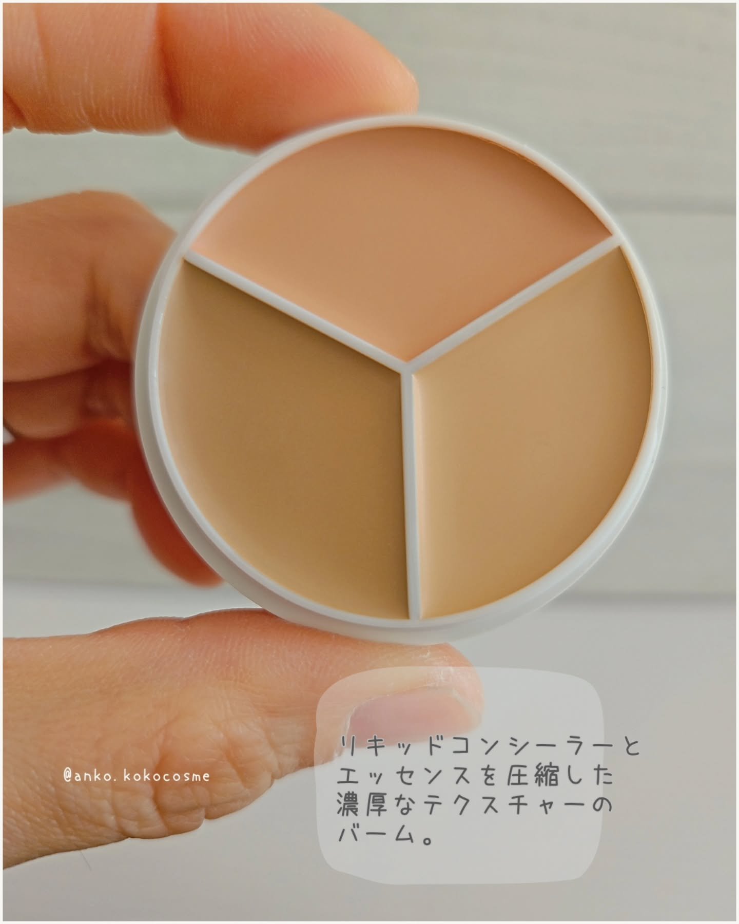 - クマからニキビ跡、シミまでこれ1つでカバー。 3色タイプだからこそ、気になるところや肌色を選ばずにご使用いただけます。 リキッドタイプを圧縮した高濃度バームのため高カバー高密着*¹を実現。 コンシーラーだけでなくコントアとしても使用可能です。 *1メーカー比